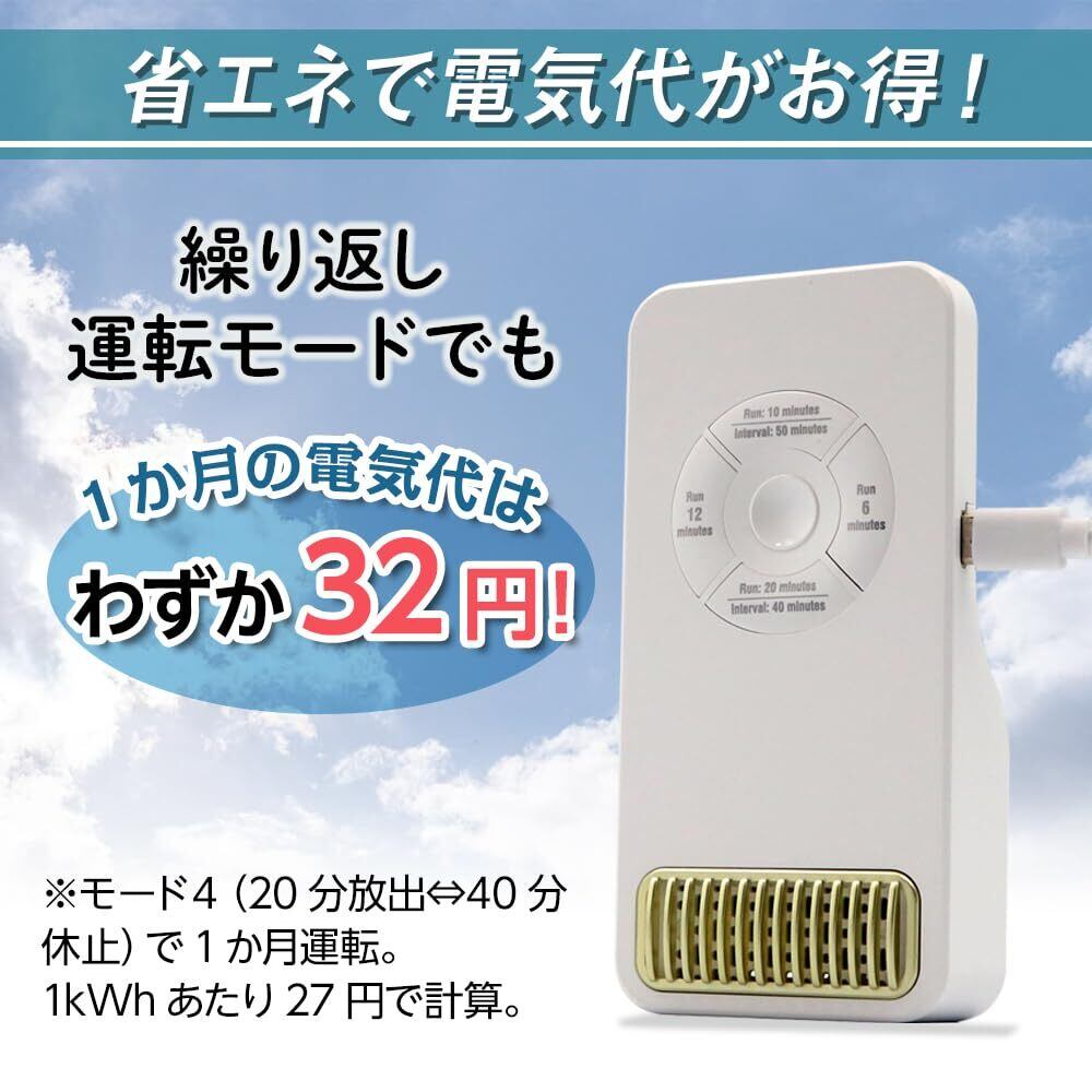 【電気代がお得!】繰り返し運転モードでも、1か月の電気代はわずか32円で省エネ設計のオゾン発生器。