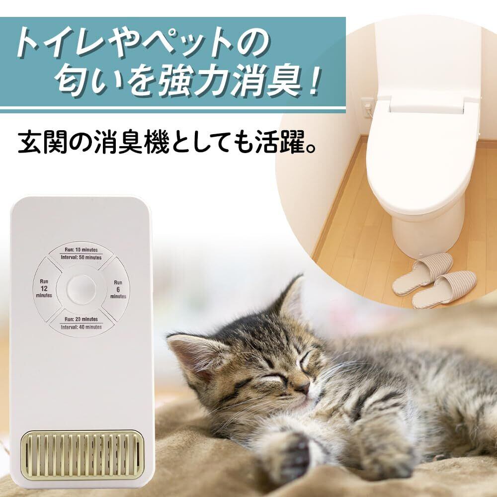 使用範囲3~10畳、内蔵バッテリー無し、電源コードタイプUSB Type-C(約1m)。トイレやペットの匂いを強力消臭!玄関の消臭機としても活躍。