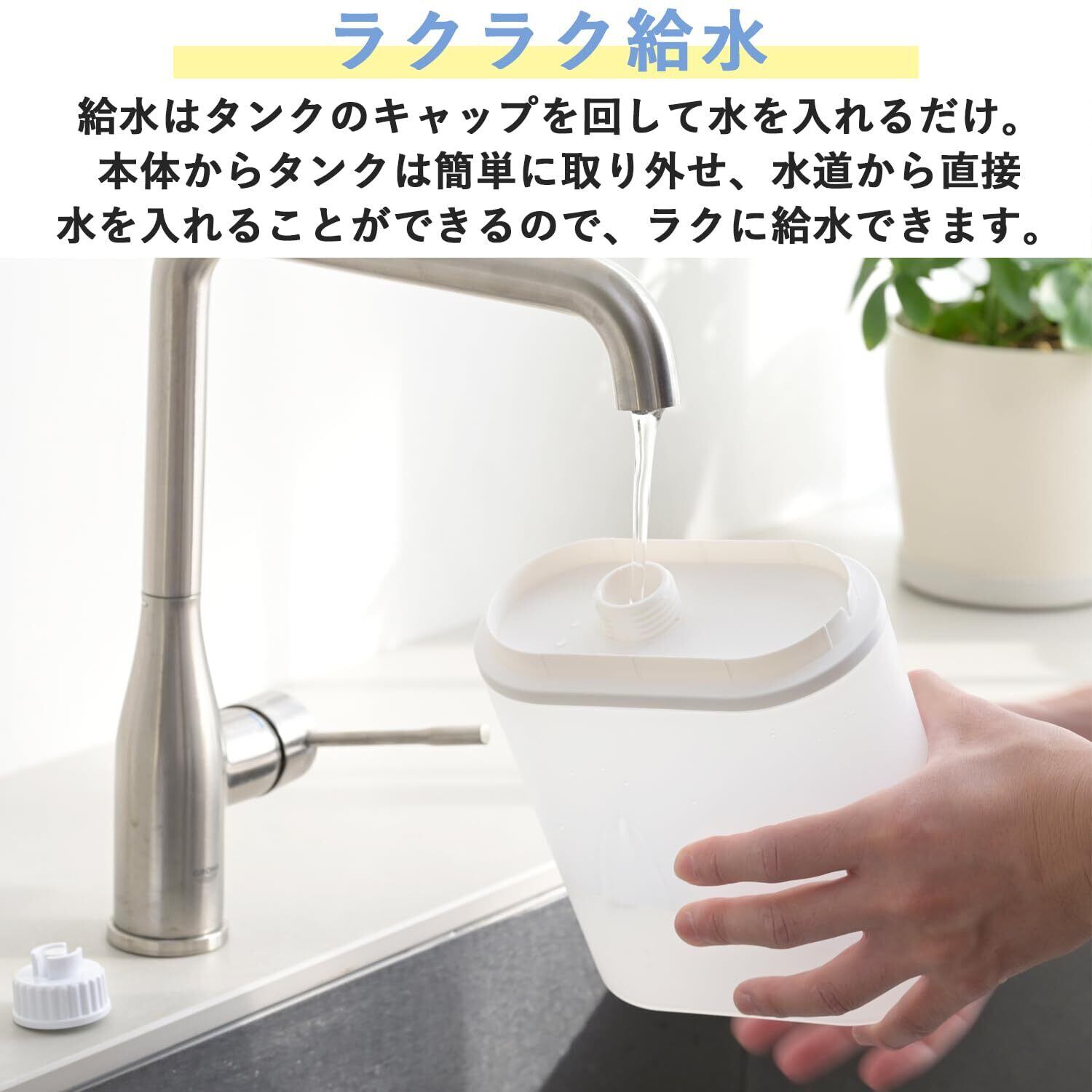 ●タンクの水がなくなると自動で電源OFFになる空焚き防止機能を搭載。