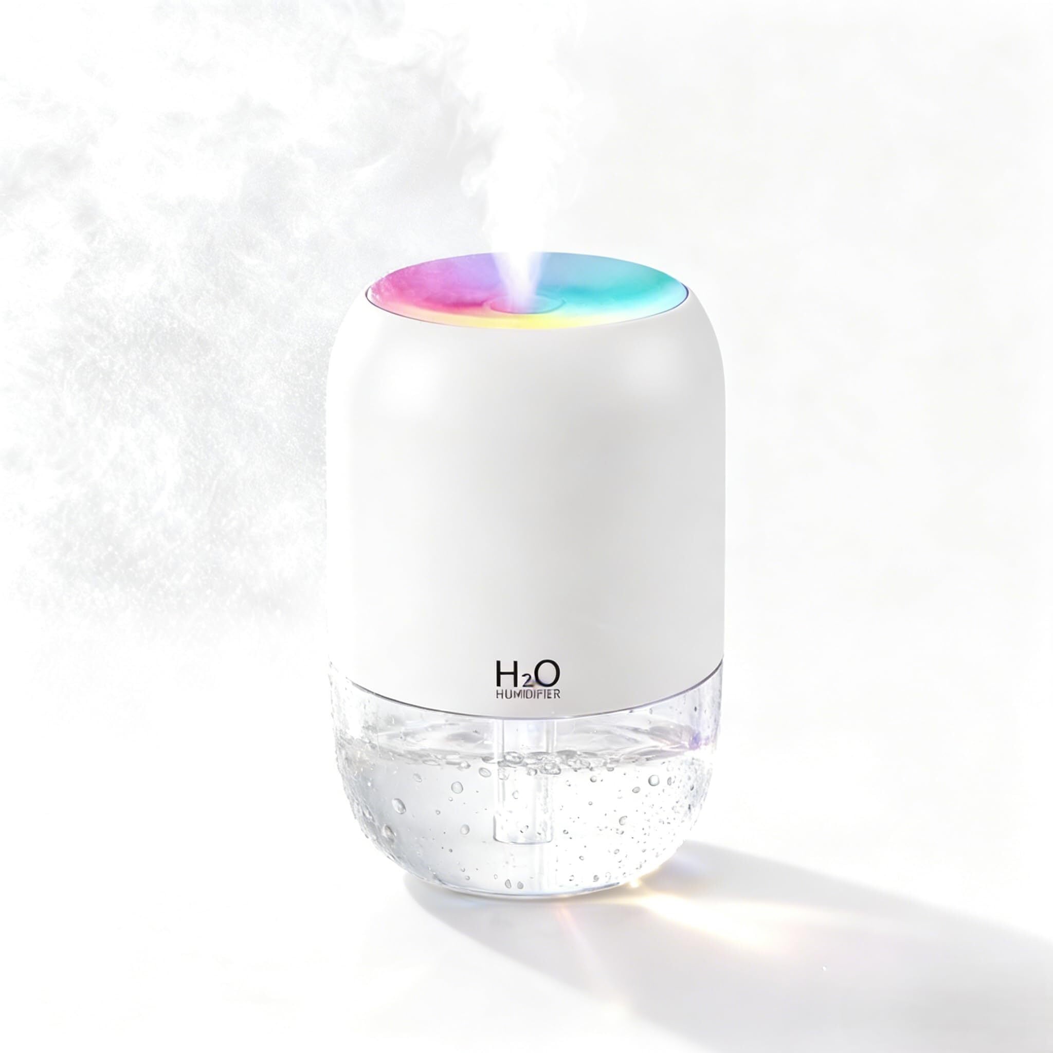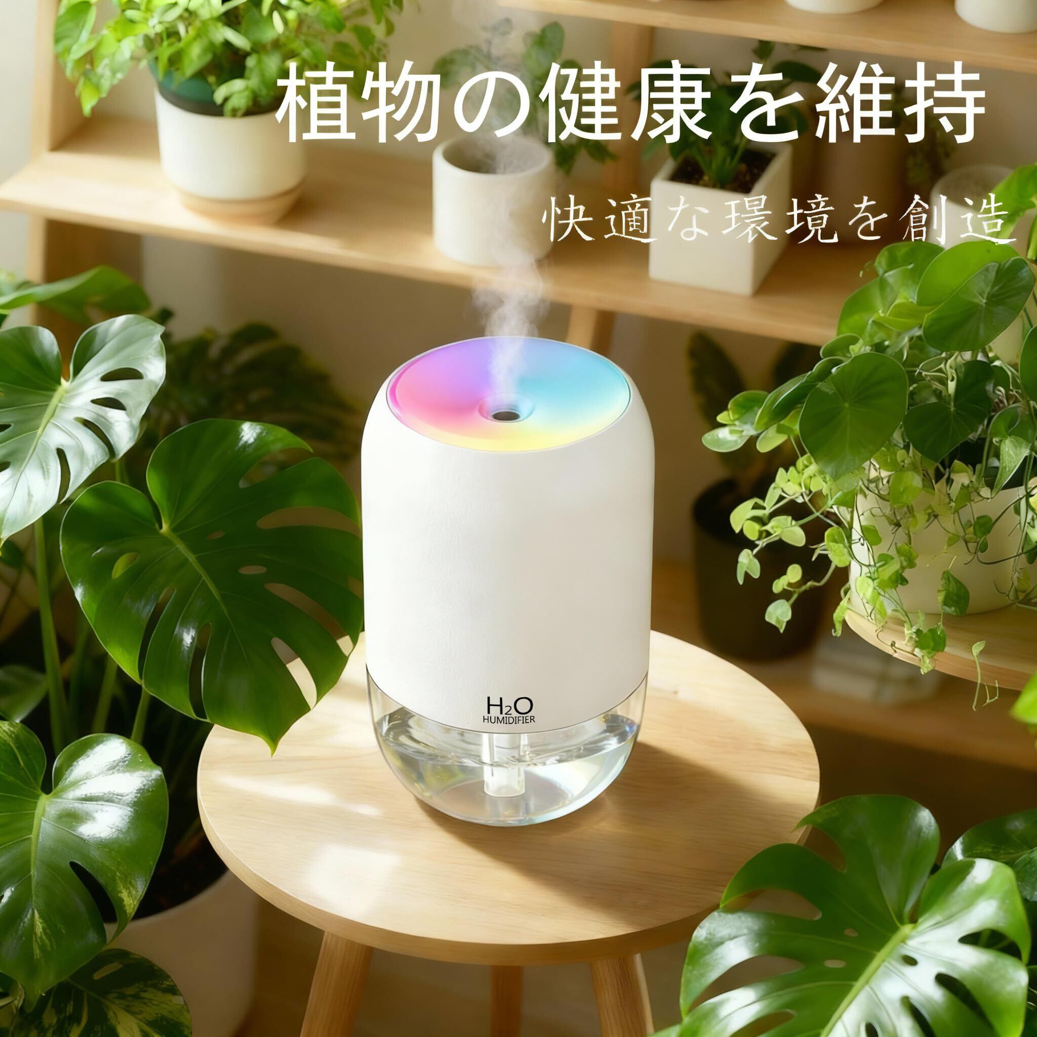 卓上加湿器 小型 USB電源式 目に見える霧 7色LEDライト付き 超音波式 オフィス デスク ベッドサイド 寝室 乾燥対策ピンク (白)