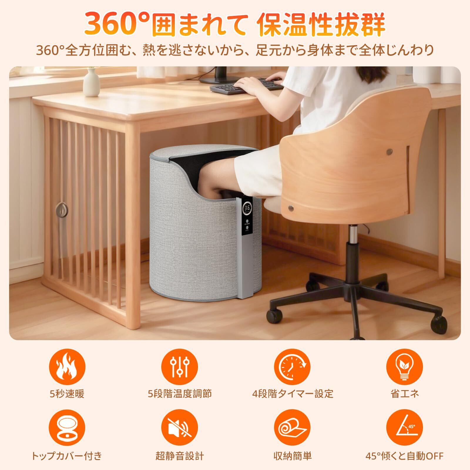 【2025業界新登場したパネルヒーター】従来の足元ヒーターに比べ、ヒートサイクル防風・防寒設計を採用し、発熱と蓄熱を実現しました。スナップクロージャに別れを告げ、このパネルヒーターは新開発の磁気開閉デザインを採用しており、操作が便利です。また、物理ボタンの設計により、誤って触れてしまう心配もありません。360°全周加熱方式とトップカバーの組み合わせで暖かさを閉じ込め、集中力アップ、仕事効率UP、真冬の北国でも春を感じられる快適さを、このパネルヒーターが提供します。