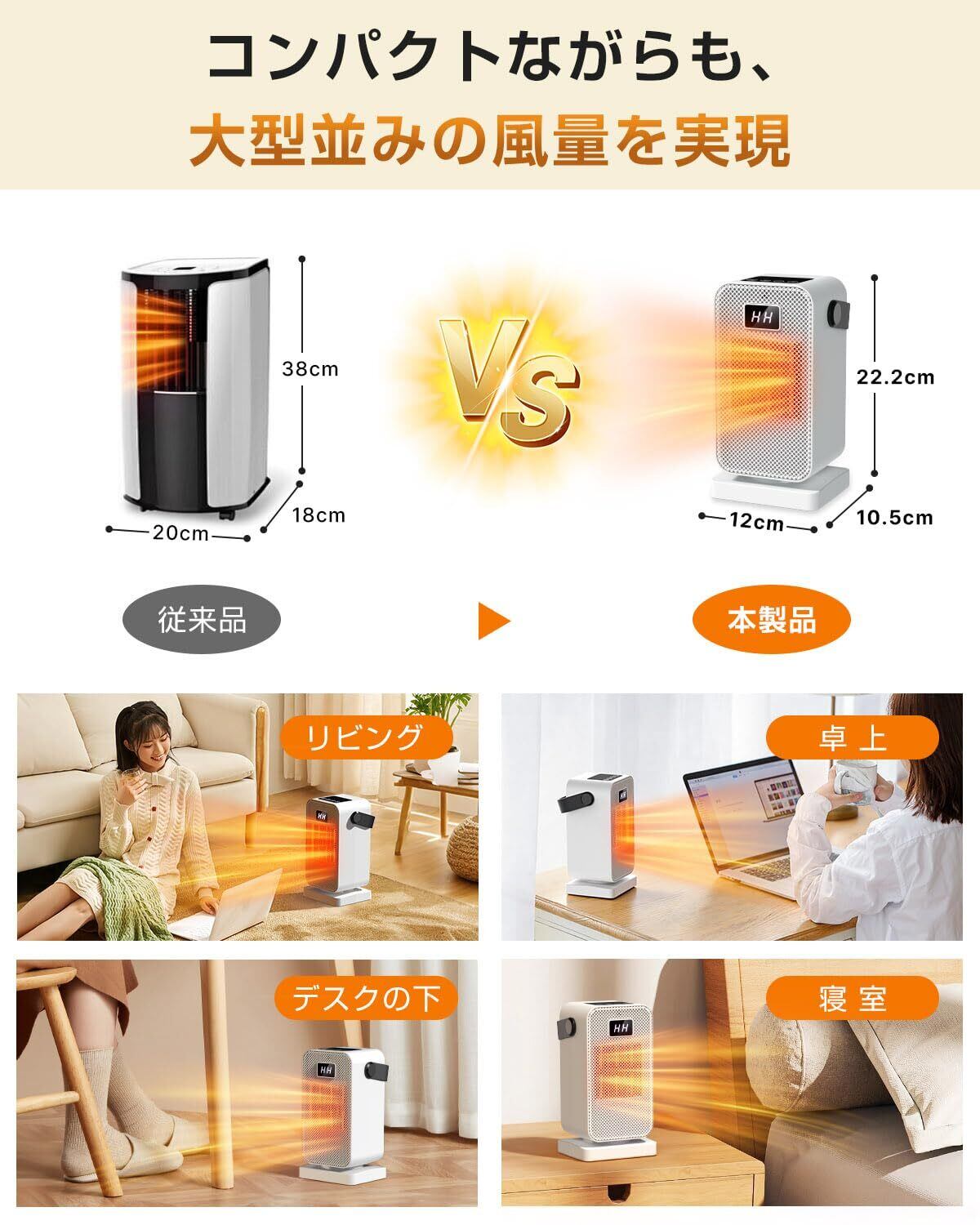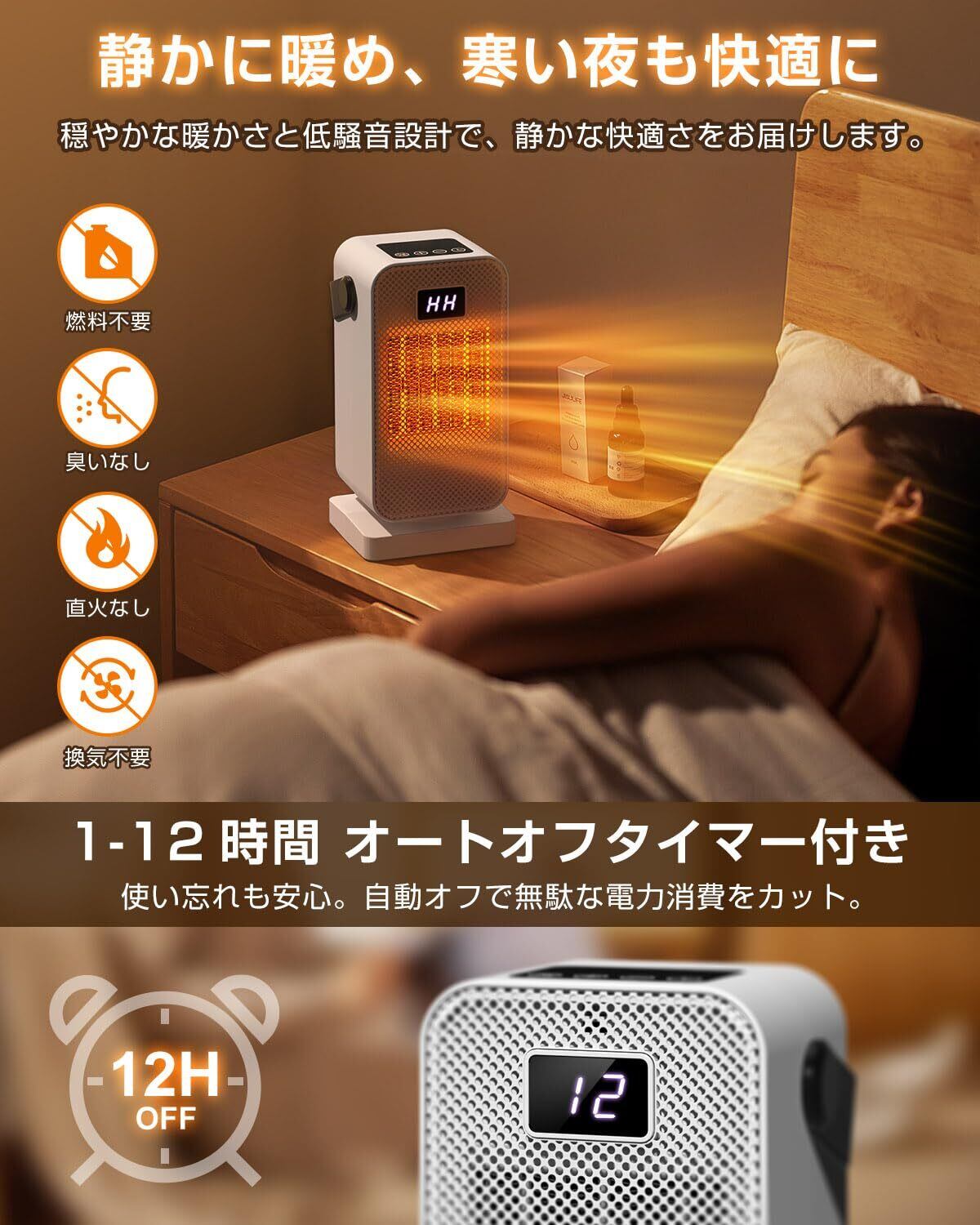 【転倒自動オフ安全設計&あんしん】足元設置に嬉しい「転倒時自動停止機能」や「過熱防止機能」を搭載、速暖性と安全性を両立したデスク下ヒーターです。あんしんとして、長期やサポート体制が整っており、製品について何かお気づきや不具合が発生した場合、ぜひお気軽にご連絡ください。お問い合わせ:「注文履歴」→「該当注文」→「出品者に連絡する」。※製品を初回に使用する場合、匂いがする場合がありますが、使用し続くと匂いが徐々に消えます。ご了承ください。