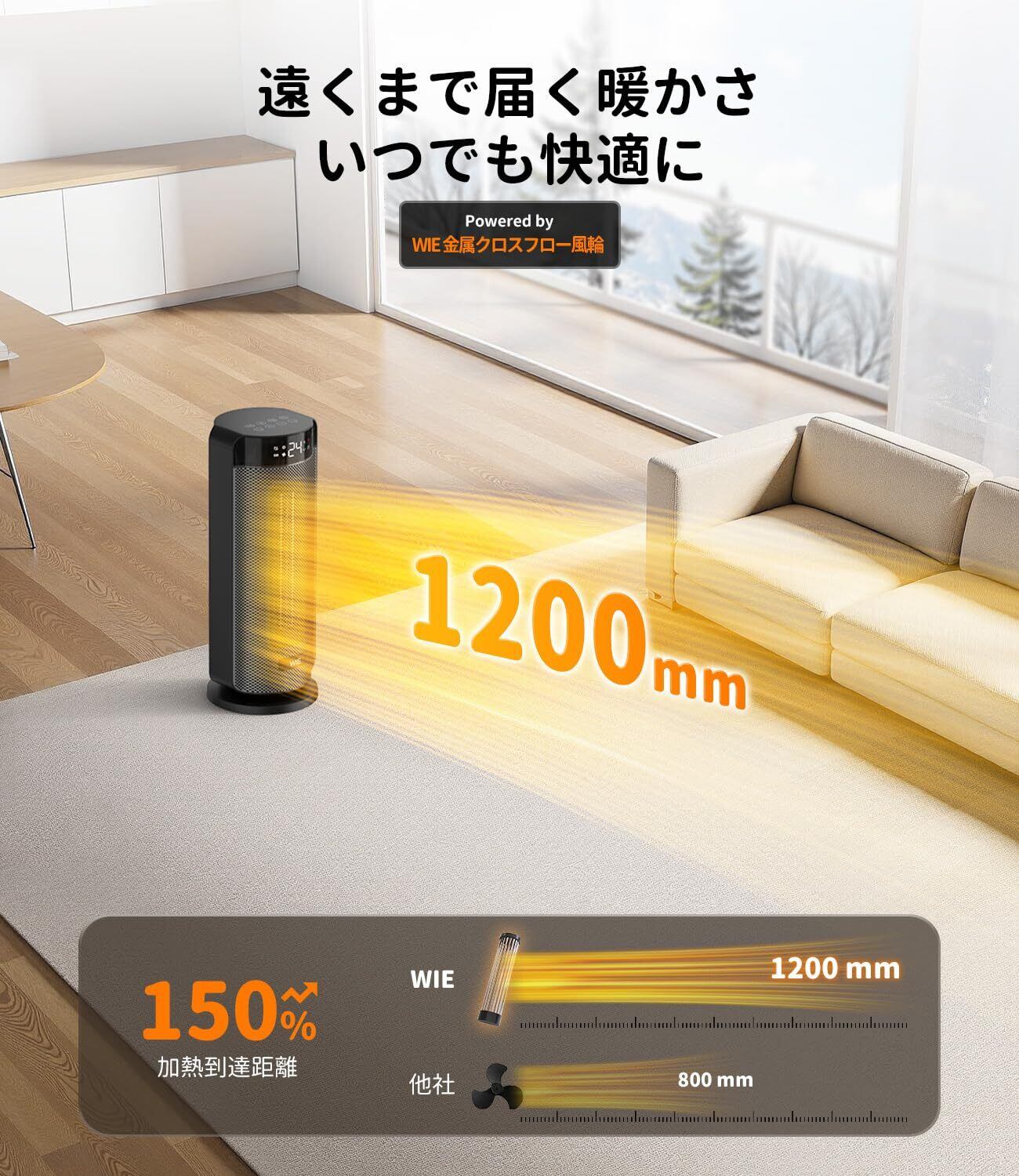 【・日本語サポート・24時間以内返信】WIEは日本のお客様へ、迅速かつ丁寧なサポートを提供します。「注文履歴」→「出品者に連絡」にて24時間以内に返信。【付属品:本体/リモコン/日本語取扱説明書/クイックガイド/】長期的に安心して使えるセラミックファンヒーターです。