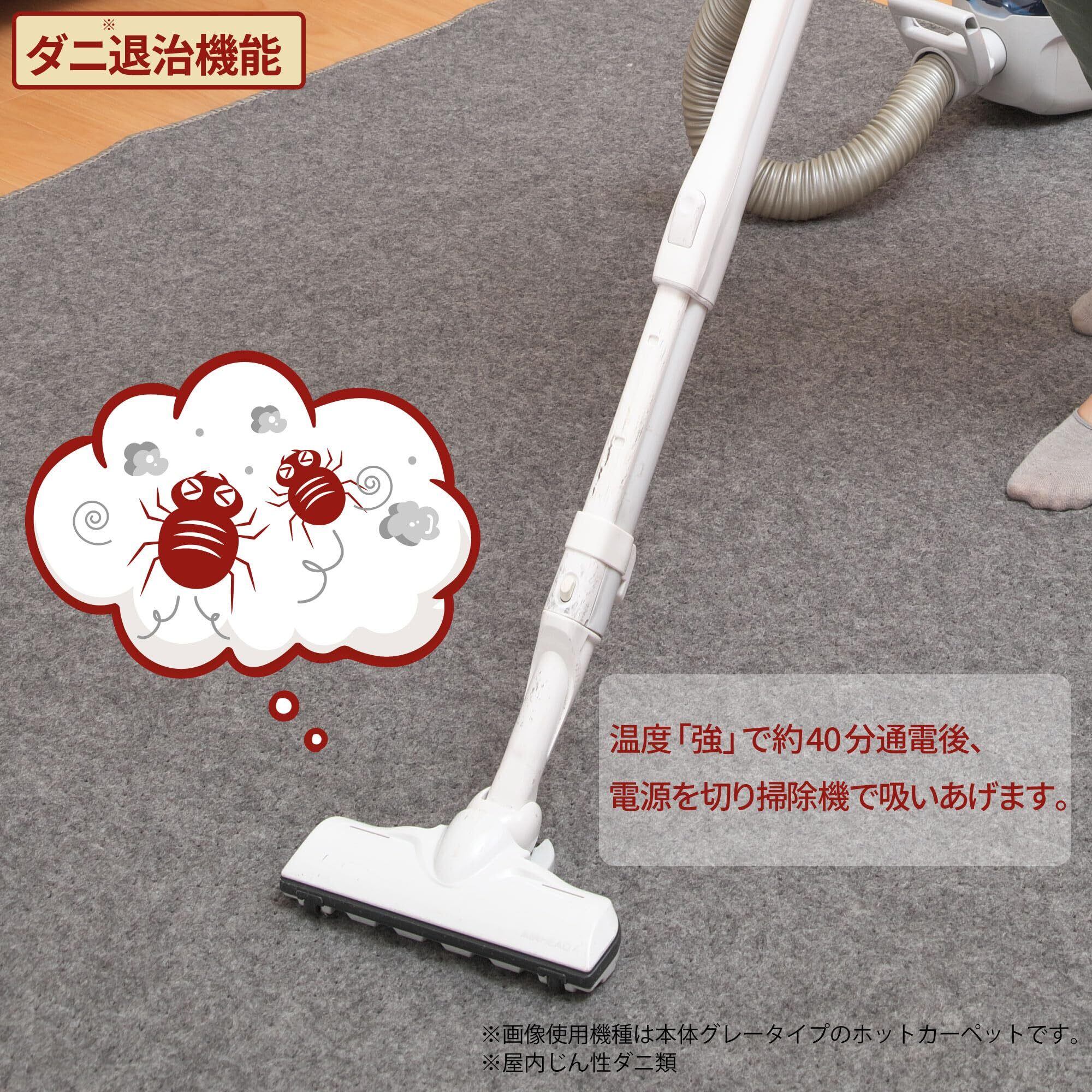 【ダニ退治機能付き】スイッチを「強」で40分通電させ、よく掃除機で吸い取ればダニ※を除去できます。ホットカーペットを畳んだり丸めたりしなくても除去できるので簡単です。※屋内じん性ダニ類に対応