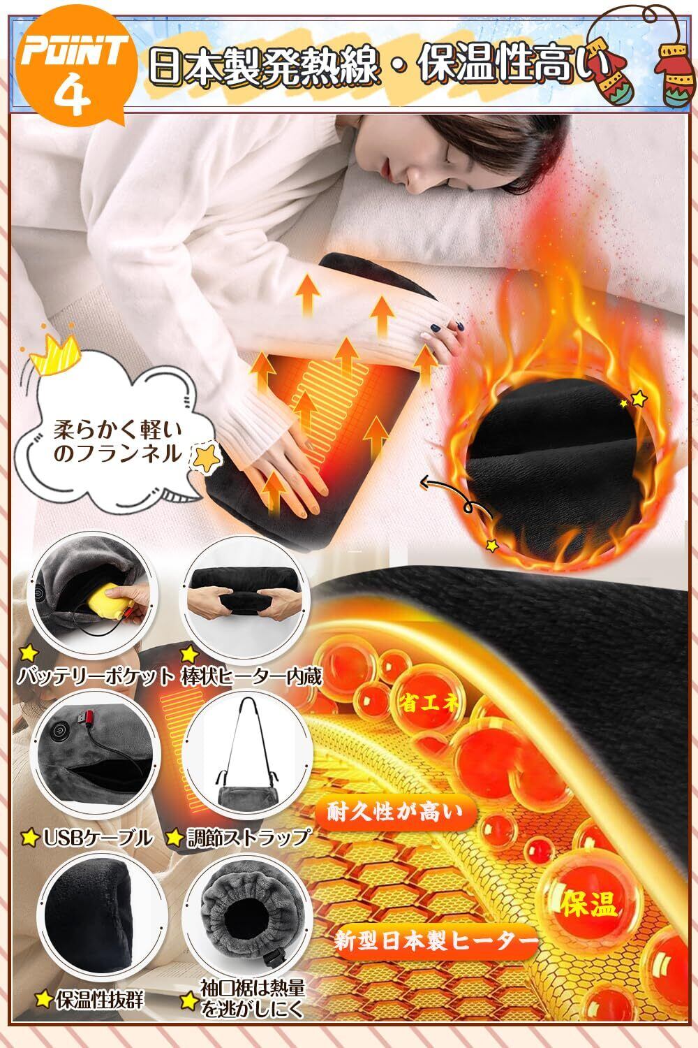 【業界初日本製棒状ヒーター内蔵・80℃高温・5秒急速加熱】ホットマットには耐久性の高い日本製炭素繊維発熱線を採用、ポカポカ発熱します。棒状ヒーターと面状ヒーター内蔵で発熱効果は普通の湯たんぽの2倍になります。電気あんかは電源を入れた後、約5-60秒で速熱、最高温度約80℃、均一加熱、発熱速度が速いです!真冬でも確かな暖かさを確保!USB電気ホットマットはどんな場所でも簡単に暖まることができて、台風・停電・登山・自宅・キャンプなどの様々なシーンで大活躍します!加熱パッドは他の暖房器具と違い、発熱面積が大きい、肌や空気が乾燥するということもありません。こ電気ゆたんぽれは冬の寒さ対策の必需品です。