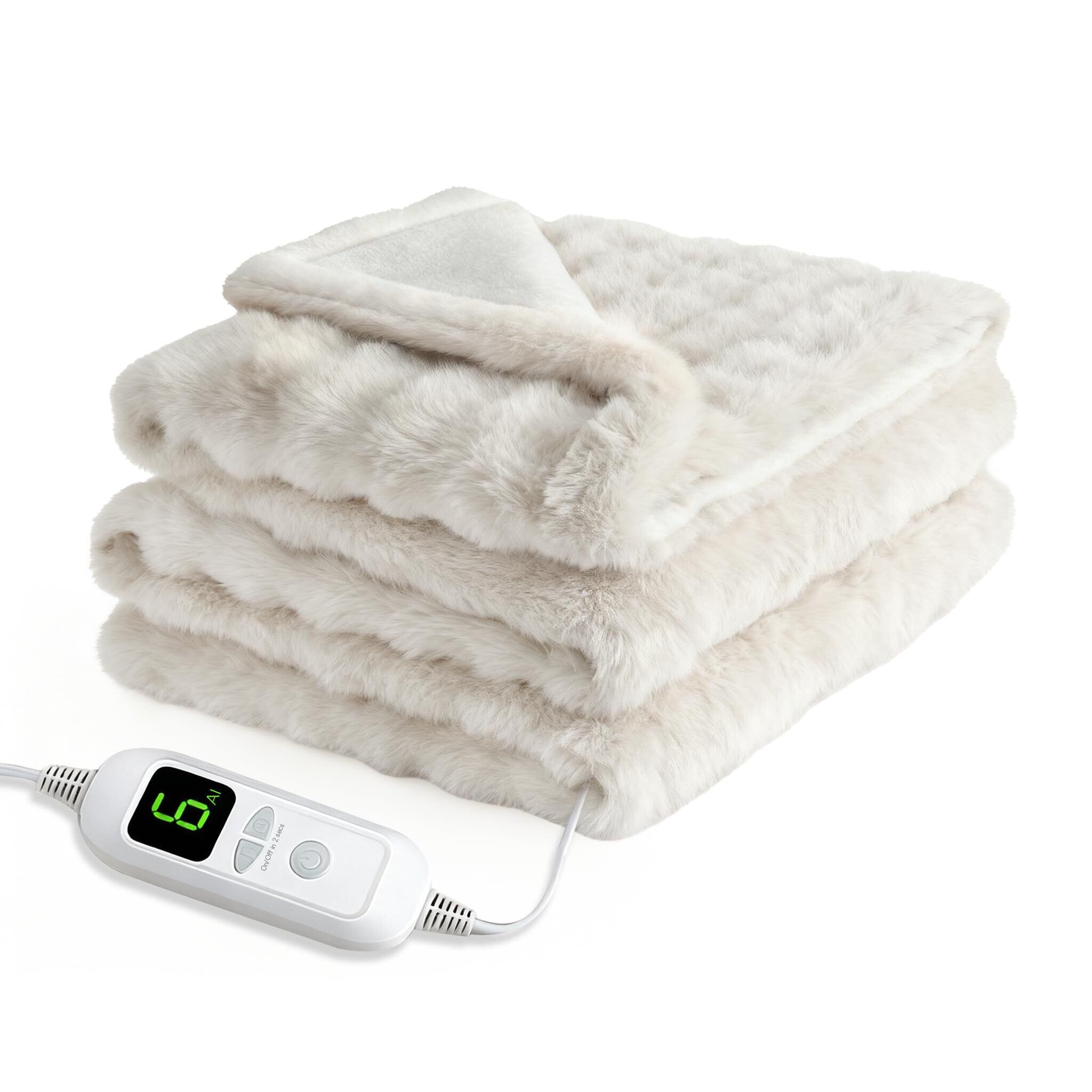 【高級ラビットファー調×フランネル素材】表面はふわふわのラビットファー調、裏面はなめらかなフランネルを採用。肌に触れた瞬間からやさしい温もりに包まれ、上質で心地よい使い心地を実現します。デザイン性と実用性を兼ね備えた電気毛布です。