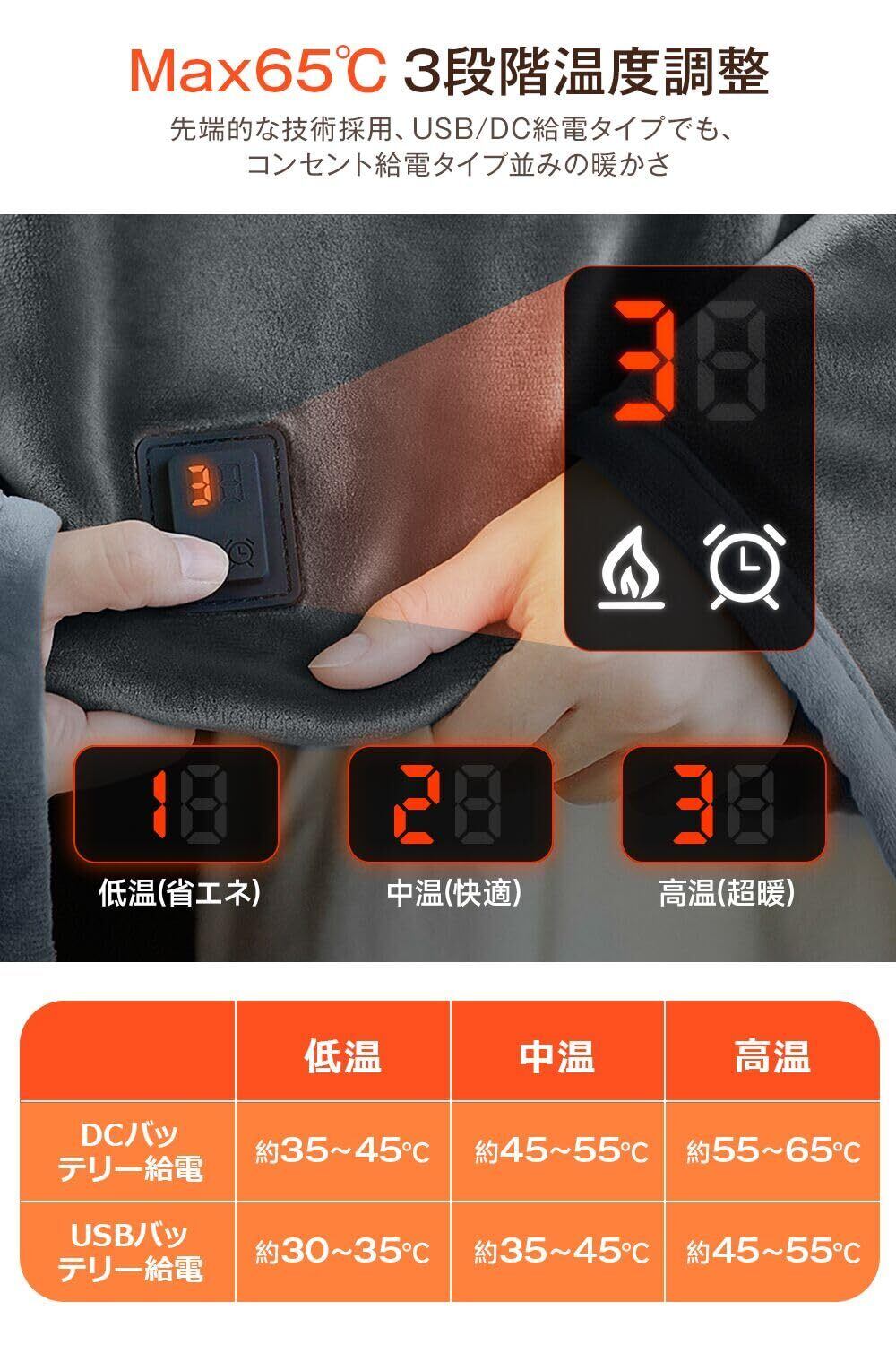 電気毛布 掛け敷き兼用 USB/DC給電 電気ブランケット 電気ひざ掛け 3段階温度調節 MAX65℃ 日本製ヒーター 6Hタイマー 肩掛け 膝掛け 敷毛布 腰巻き ダニ退治 切り忘れ防止 丸洗い可 防寒対策 暖房器具 速暖 ふわふわ ブランケット 省エネ キャンプ ソロキャンプ 車中泊 テント泊 アウトドア オフィス (グレー)