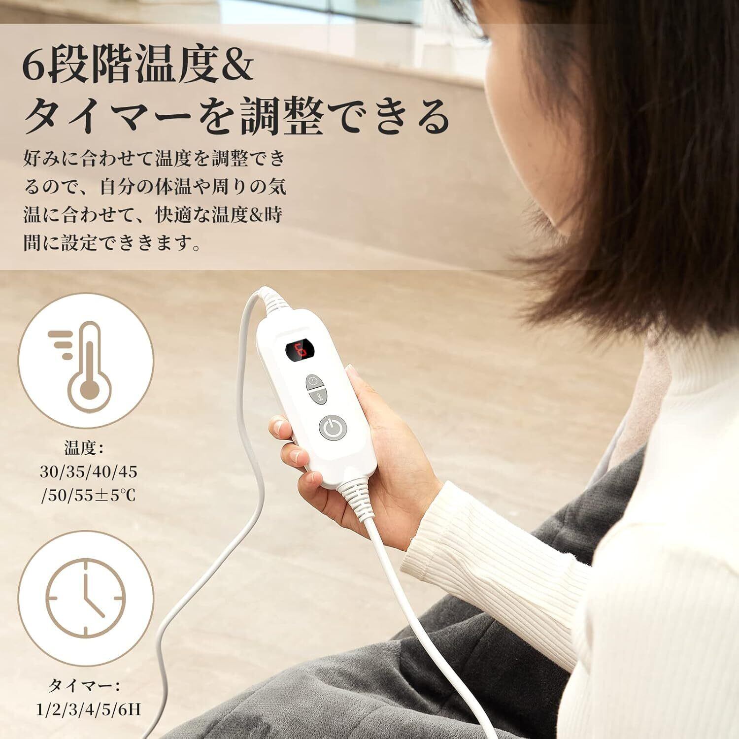 【タイマー機能】1-6時間から自由に設定することができます。夜の就寝時でも好きな時間に消すことができるので大変便利な電気毛布です。タイマーを設定しないと、「3時間自動OFFタイマー」が備わっており、切り忘れを防止できて、子供や高齢者も安心して使えます。さらに、使用時間を制限しやすいので、電気代の節約にもつながります。