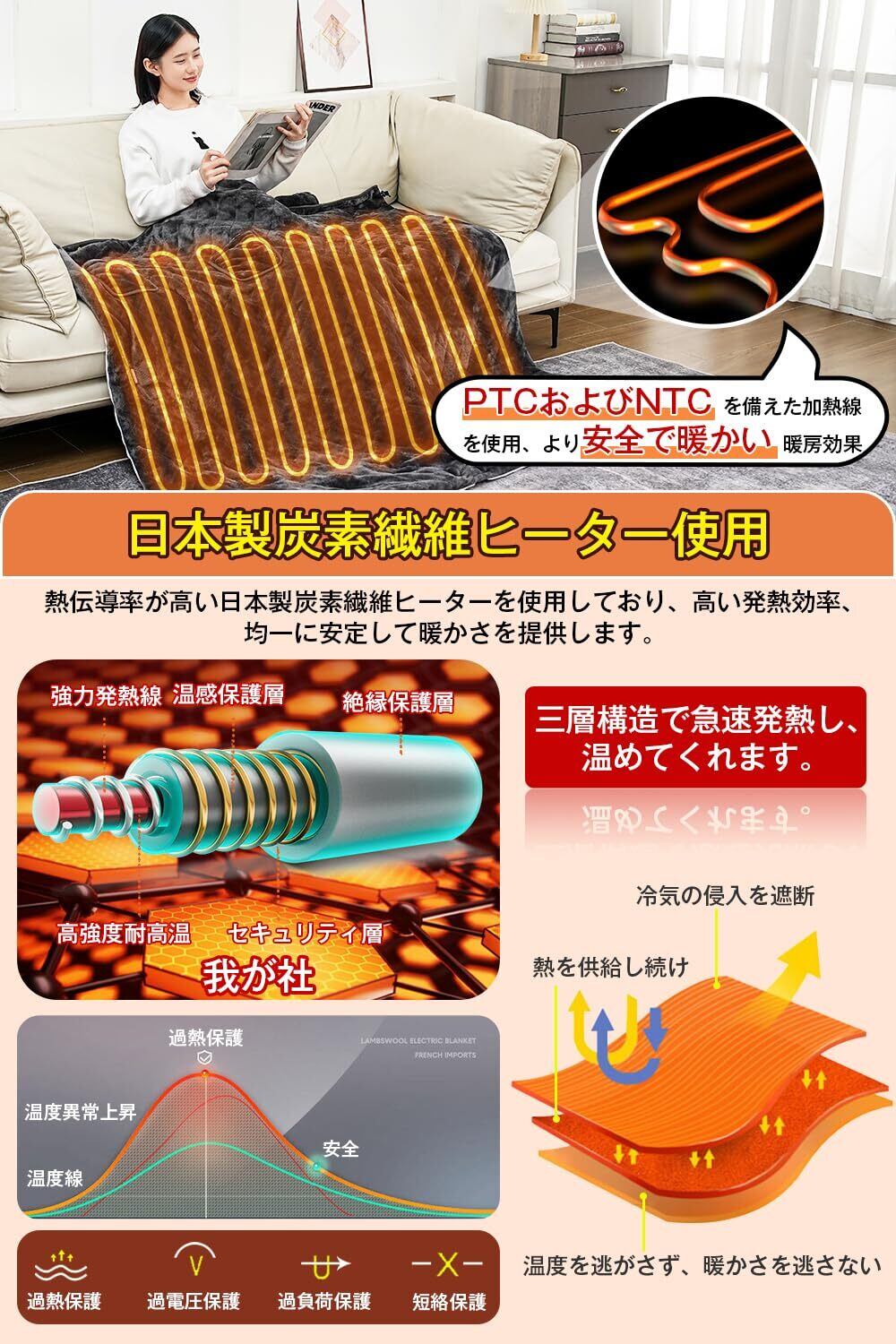 【日本製炭素繊維ヒーター&8段階温度調節&6段階タイマー機能】電気毛布は熱伝導率が高い日本製炭素繊維を使用して、高い発熱効率、10秒速暖、均一に安定して暖かさを提供します。電気敷き毛布はただ強-中-弱3つのモードしかない従来電気掛け毛布と違って、約32℃~55℃という8段階レベルの温度を好きに合わせて細かく調節できます。熱に弱い家族でも負担なく電気ブランケットを気軽にご利用いただけます。さらに、6段階タイマー機能付き、うっかり電源を消し忘れを防止し、タイマー設定しない場合も、電気毛布が1時間後自動に電源が切れるので、省エネで環境やご家計にもやさしいです。(記載は電気毛布の発熱温度のため、実際に感じる温度とは差がございます。)