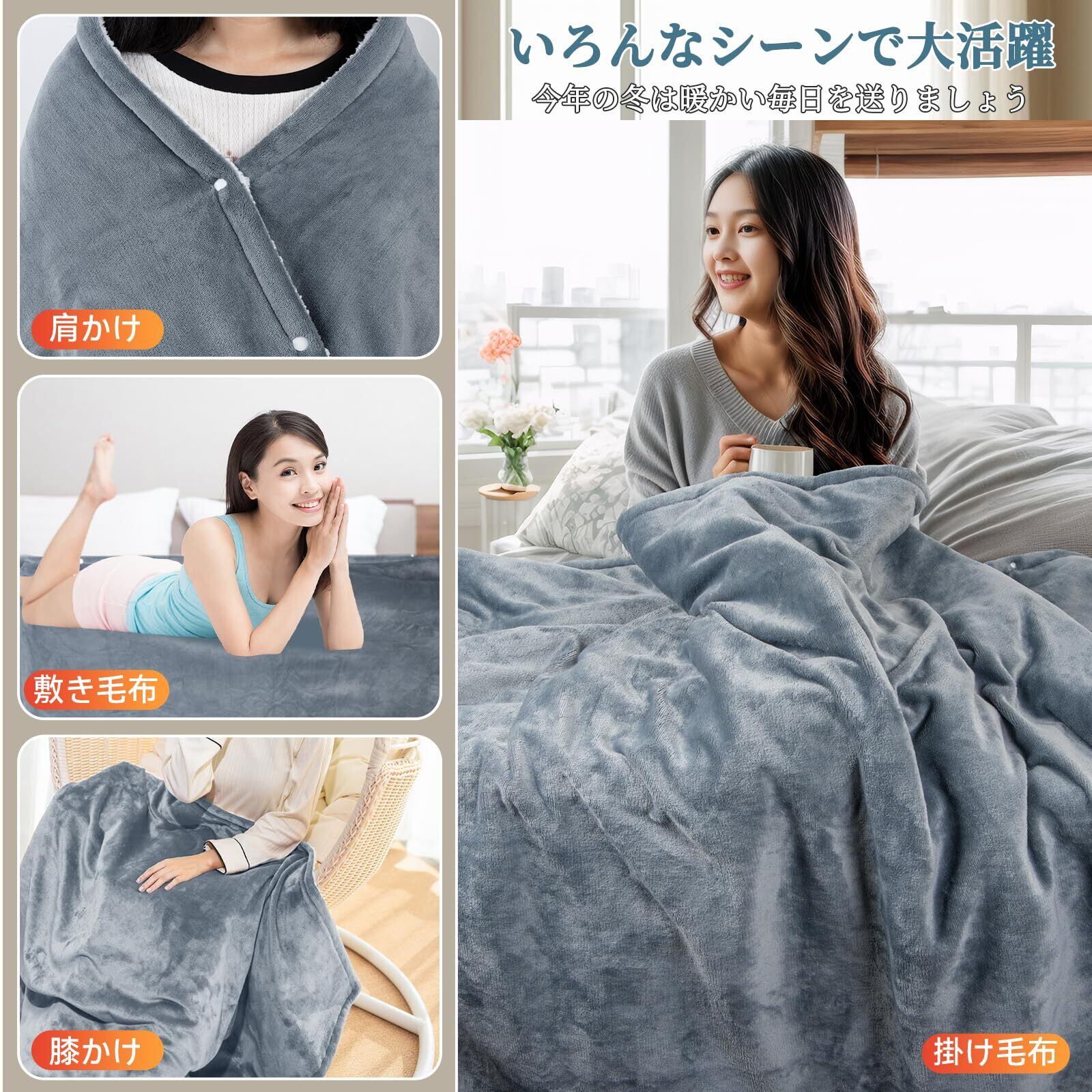 電気毛布 掛け敷き兼用 188×130cm 電気毛布 掛け フランネル ふわふわ 電気ブランケット丸洗い可 3分速暖膝掛け4h自動電源オフ ソファ ブランケット過熱保護 防寒対策 抗菌 防臭 ダニ退治 冷え予防 暖かい 冬用 冷房対策 暖房器具 PSE認証済み
