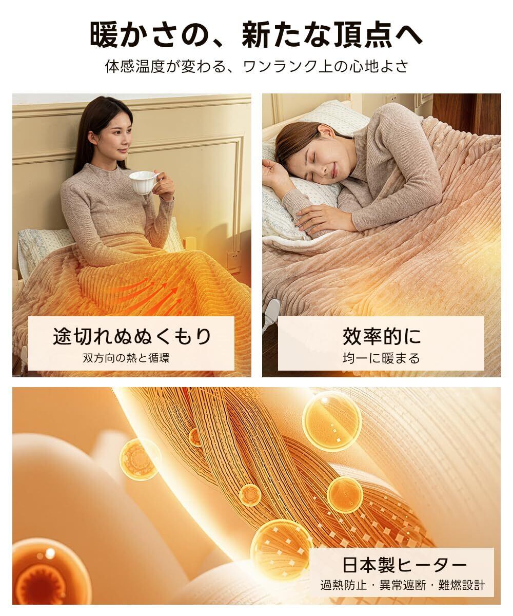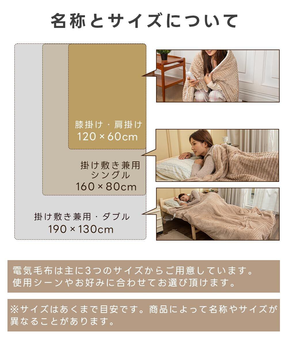 【大人2人でもゆったり使える大判サイズ】 190×130cmのゆったりとしたサイズで、大人4人でも十分な広さが確保されています。掛け毛布としても、敷き毛布としても、膝掛けとしても中活躍。電源コードはベッド下やソファ裏のコンセントまで届く十分な長さがあり、設置場所を選びません。一枚で多様なシーンに対応できる実用的な設計です。