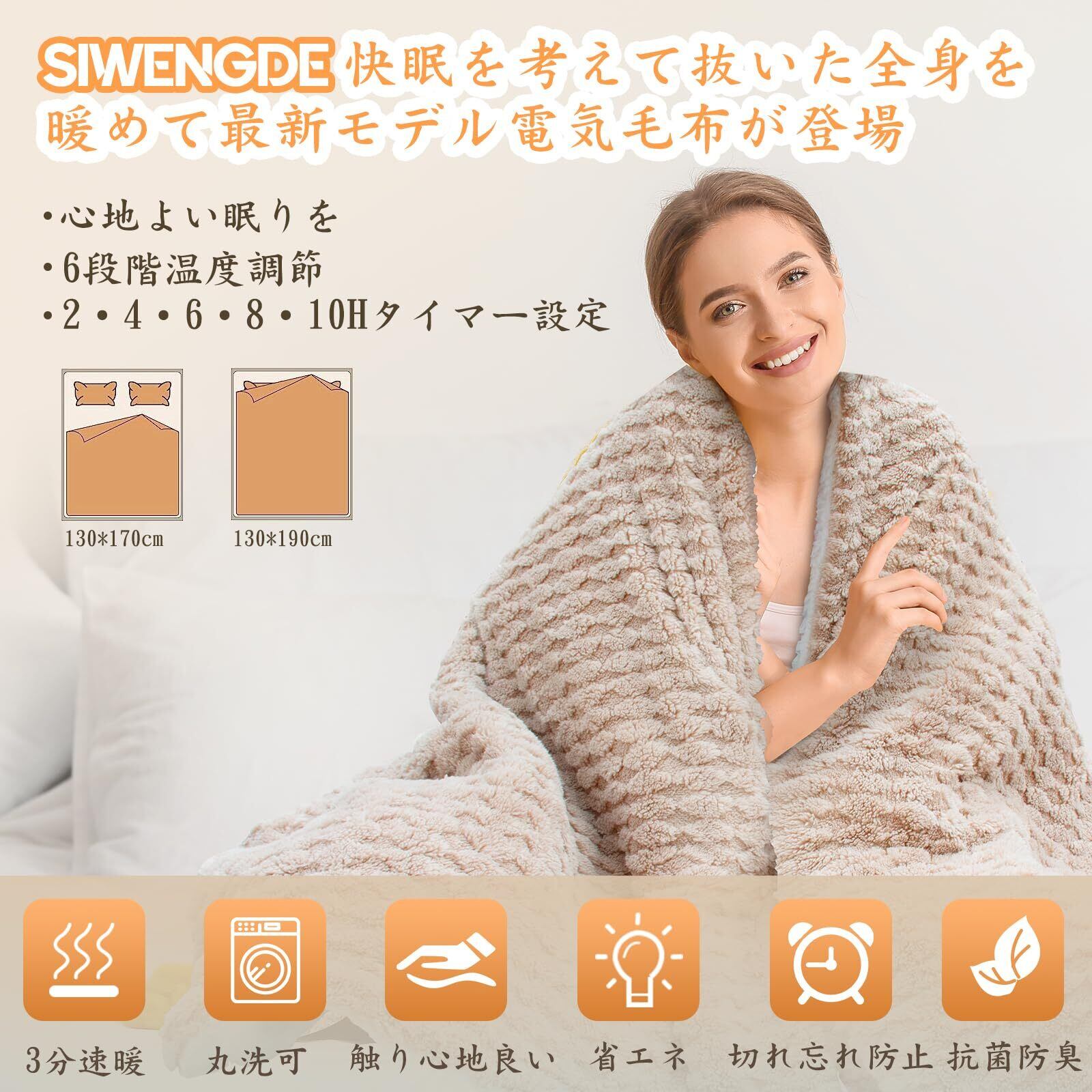 SIWENGDE 電気毛布 掛け敷き兼用 170*130cm 電気ひざ掛け 電気ブランケット ふかふか ソファ ブランケット 6段階温度調整 5つタイマー機能 敷きかけ兼用 3分速暖 ふわふわ 肩掛け 膝掛け ヒーターブランケット シングル コントローラ付きダニ退治 過熱保護 抗菌 防臭 冷え予防 防寒対策 冷房対策 暖房器具 PSE認証済み(170*130cm)