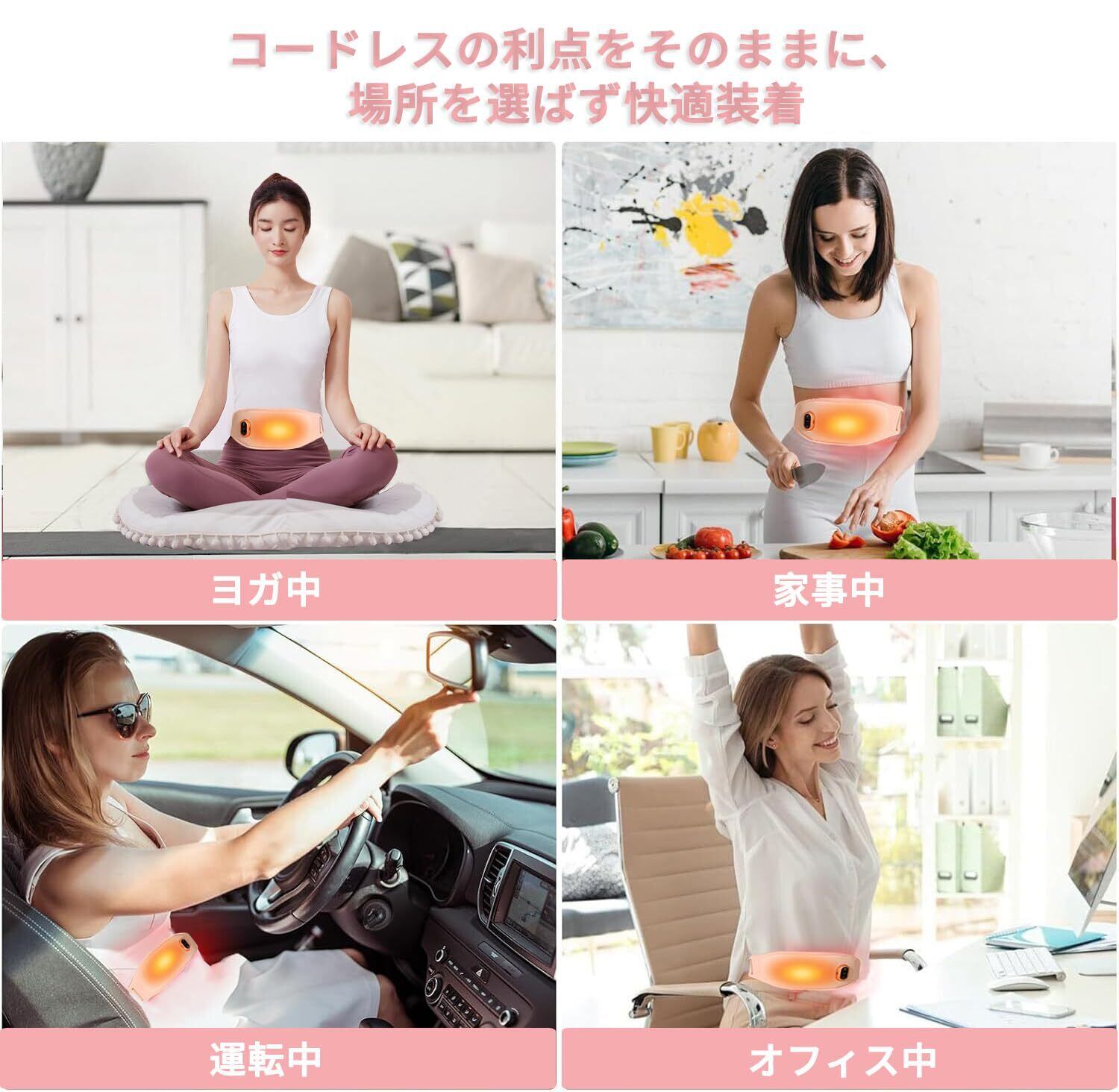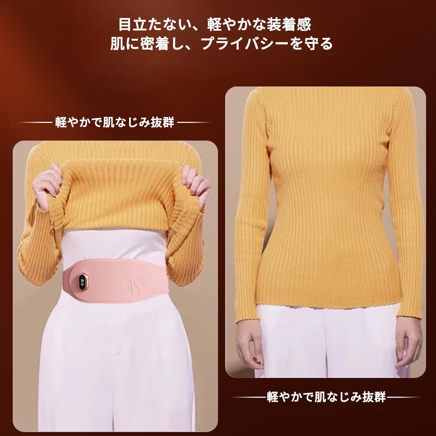 超薄型軽量設計:厚さ約0.2インチ・重量約0.5ポンドの超薄型ボディが腰とお腹のカーブにフィット。衣服の下でも目立たず、従来のカイロのような膨らみや違和感がありません。