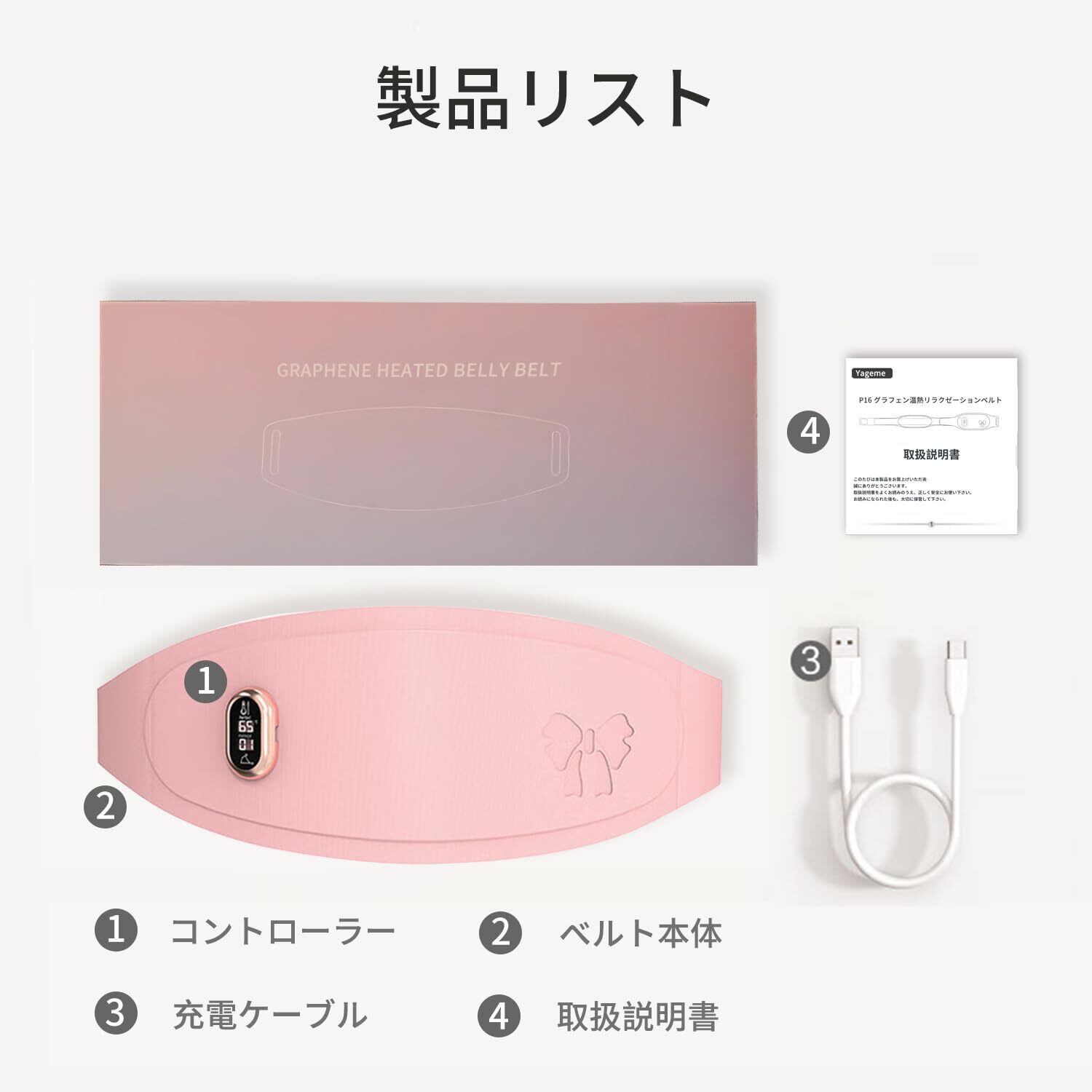【セット内容・安心1年サポート】①コントロ-ラ-*1、②ベル卜本体*1、③充電ケ-プル*1、④日本語説明書*1、⑤上品なギフトパッケージ *1。1年の安心が付いており、初期不良や新品故障の場合など、お気軽に連絡していただければ、24時間内に対応致します。