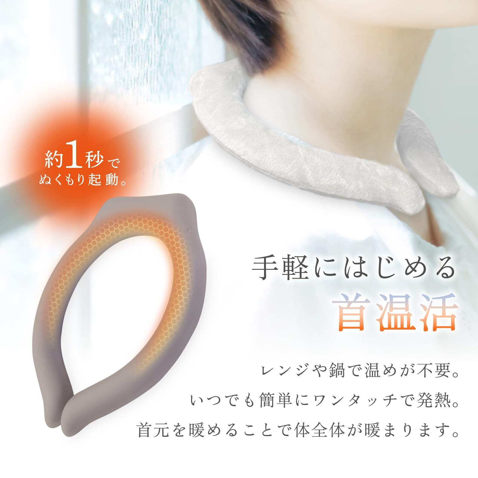 ■【温熱効果で首・肩をじんわりリラックス!】 シーンに合わせて低・中・高温の3つの温度設定が可能。 約1秒で瞬間加熱し最大約47℃まで温度が上昇して、肩こりなどの首の筋肉を温めリラックス効果も期待できます。