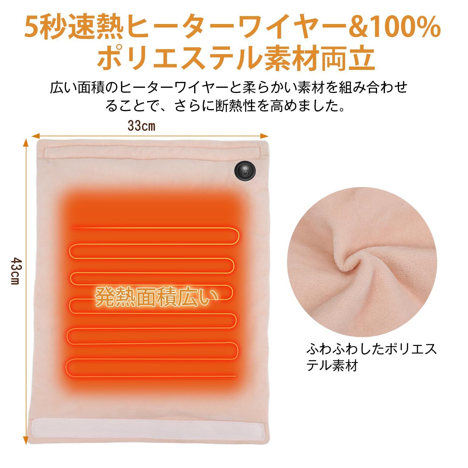 【注水必要なしより安全&持ち運びに便利】お湯の入れ替えが不要電気湯たんぽ、お湯を注いで熱湯が飛び散る危険はありません。両面加熱対応、電気マットのサイズは約43cmx33cm、僅か155g軽量で持ち運びに便利で、巻いてリュックに入れて手軽に持ち運べるので、スペースをとらない。1.5mUSB延長コードも付属し、活動空間がさらにUP、充電アダプターで使用する場合、電池切れの心配がなく、いつでもお好きな場所で使用できます。