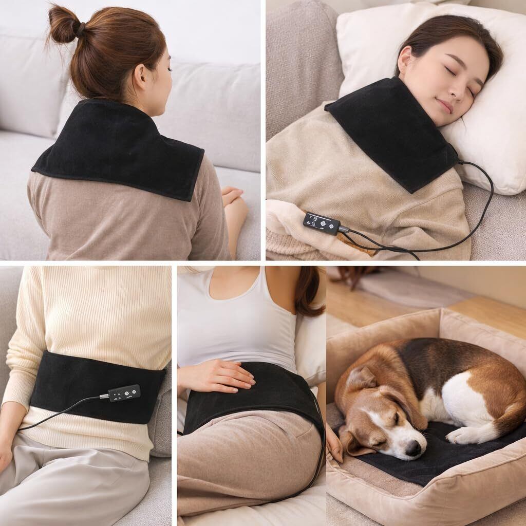 【身体に優しい温熱効果】安定した温熱で筋肉の緊張を緩和し、肩こり、腰痛、生理痛などの痛みを和らげる効果が期待できます。柔らかい素材で肌触りが良好で、長時間使用しても疲れにくく、日常のリラクゼーションに最適です。