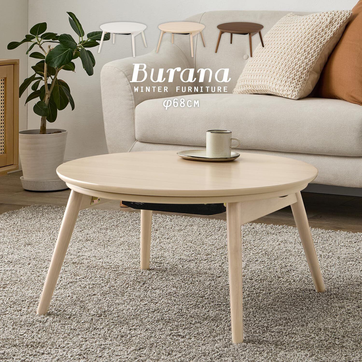 まるくて可愛い形が特徴の丸型こたつテーブル「ブラーナ」。角のないデザインで、お部屋にふんわりとした柔らかい印象を与えます。