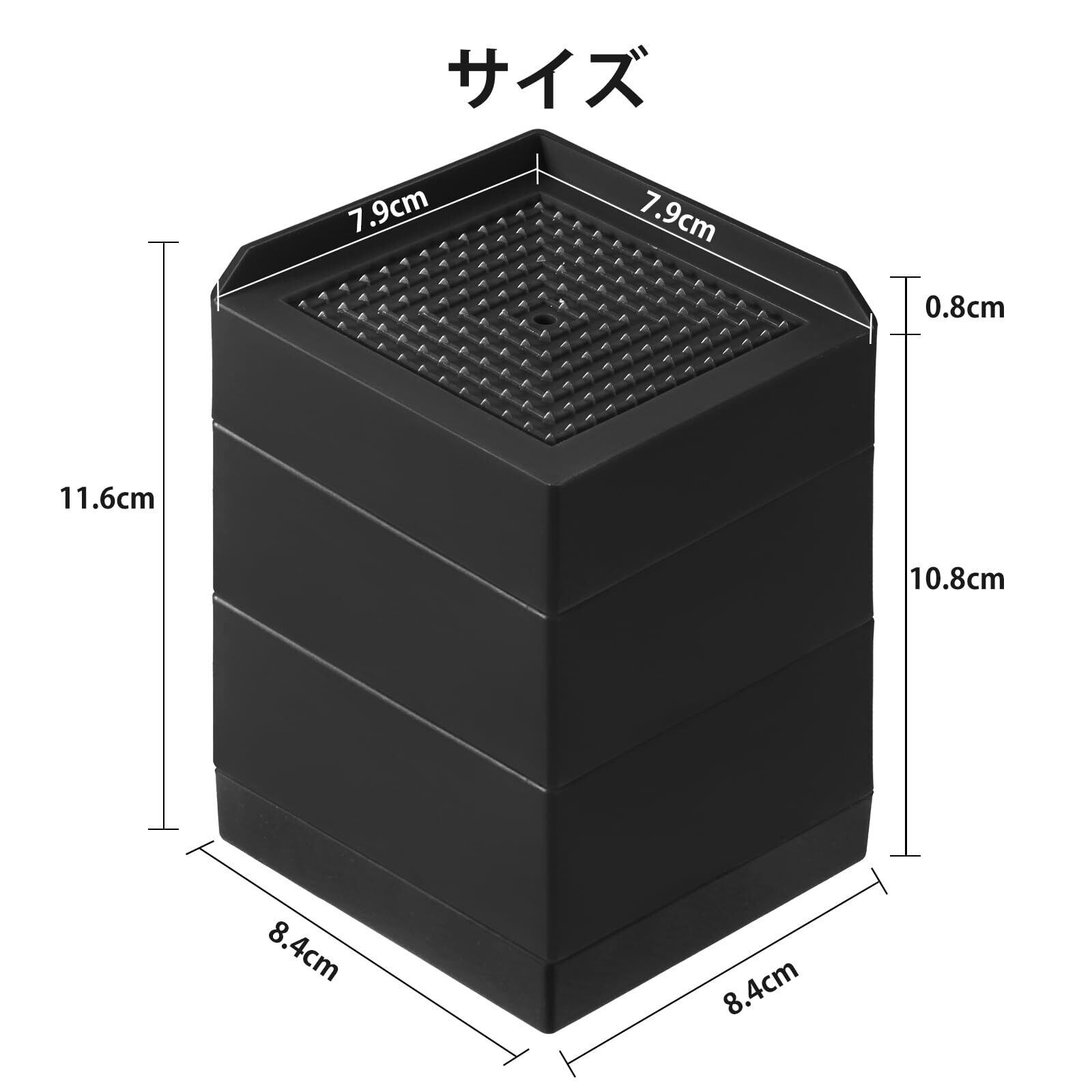 【汎用性高い】1000kgの重さにも耐えられ、安定性が高いです。脚を置く天面のサイズ(7.9×7.9cm)がほとんどの家電製品と家具の脚に合っています。※適用対象:足なし、丸足の直径が79mm内(角脚の最長辺が79mm内)のこたつ、座卓、テーブル、机、ソファー、ベッド、縦型・ドラム式洗濯機、冷蔵庫、食洗機、エアコンなどの家具と家電製品。また、2個または4個を併用したら、大きめサイズの足(最長辺は25cmまで)にも対応しています。