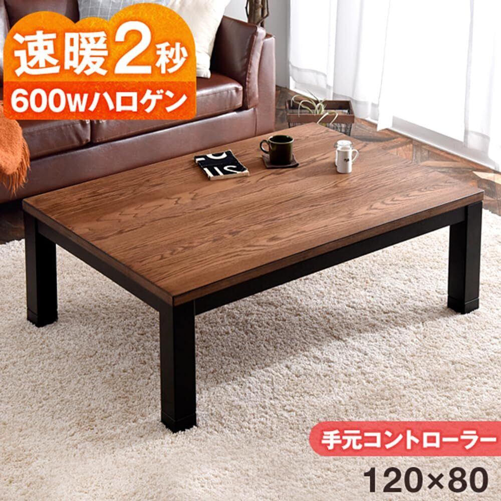 タンスのゲン こたつテーブル 幅120cm 長方形 継ぎ脚5cm 手元コントローラー UV 天板 オールシーズン 21300083(57180)