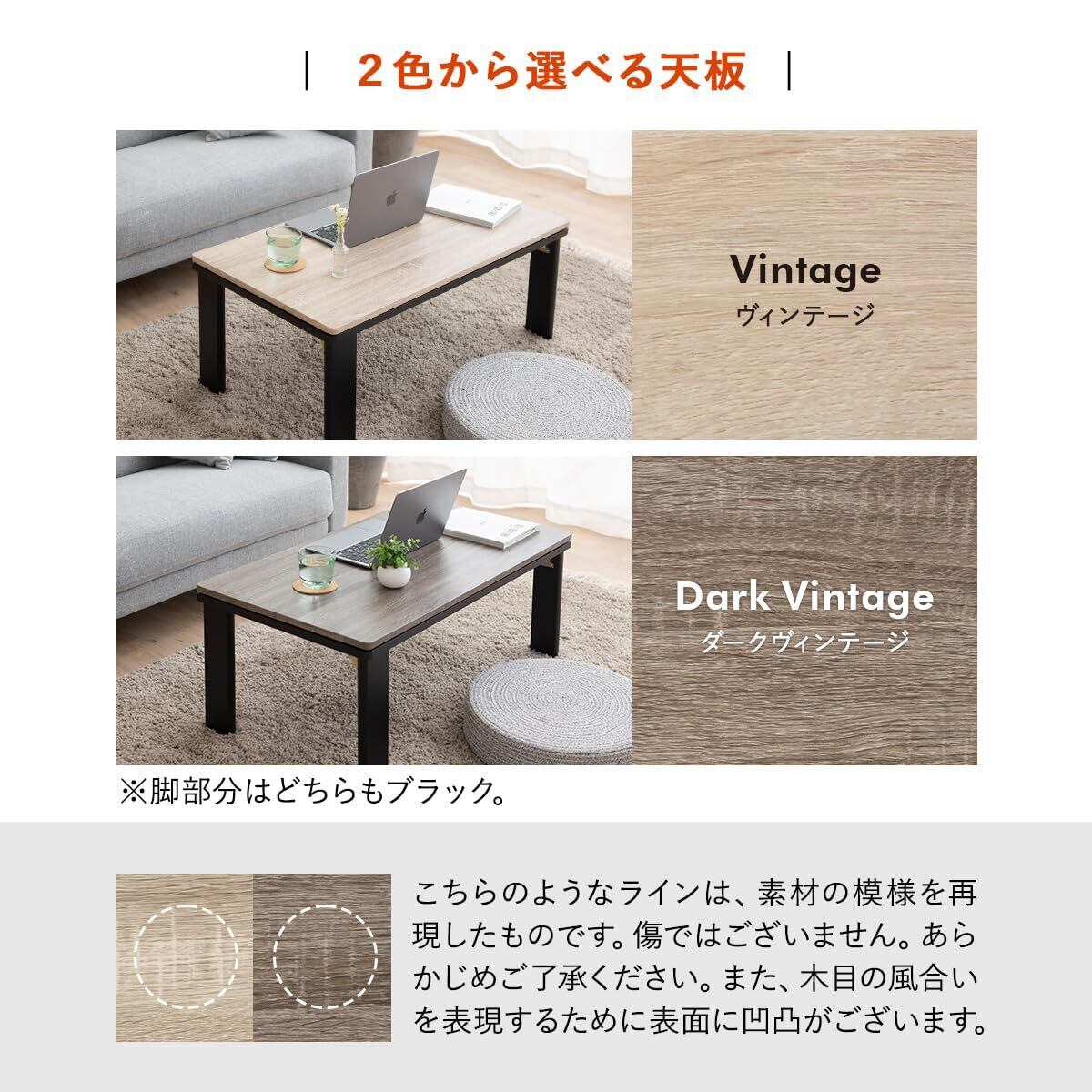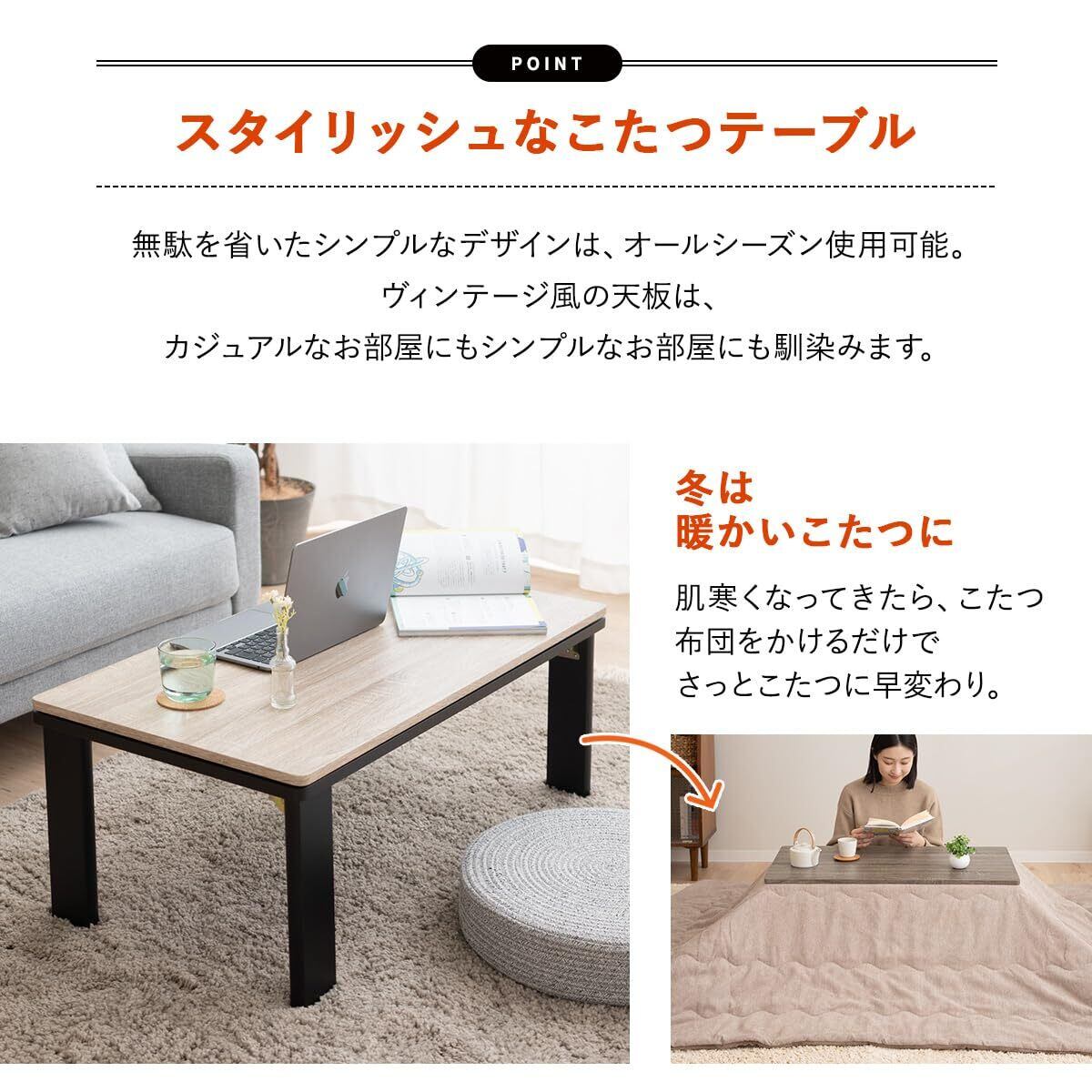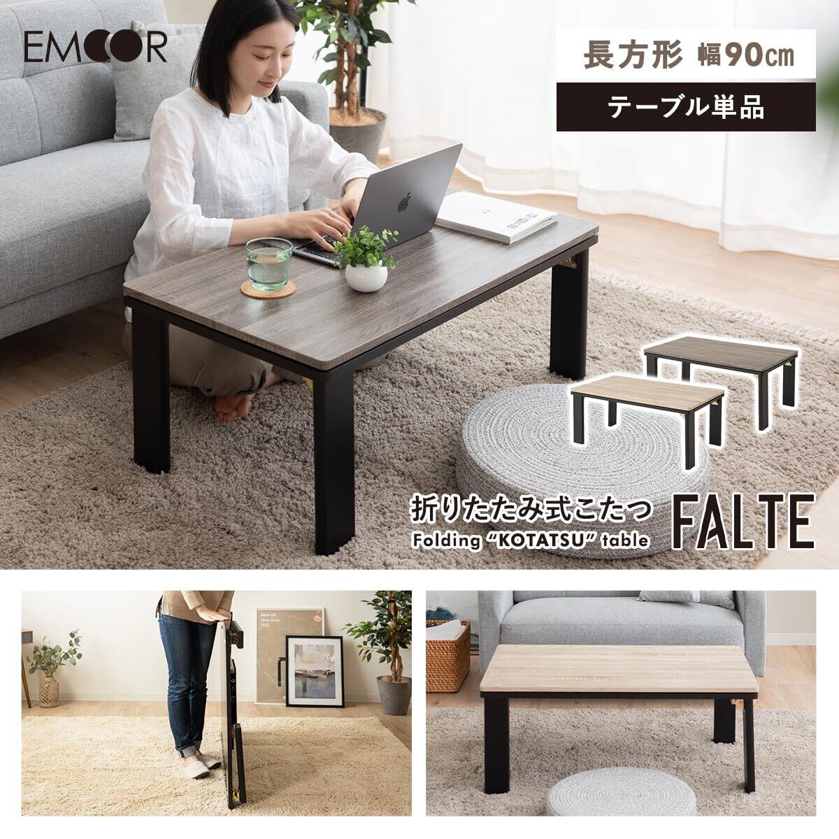 エムール こたつ テーブル こたつテーブル 折りたたみテーブル FALTE 長方形 幅90cm ダークヴィンテージ