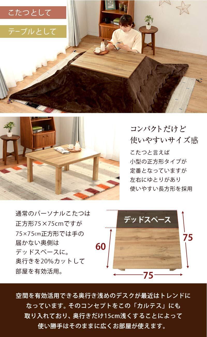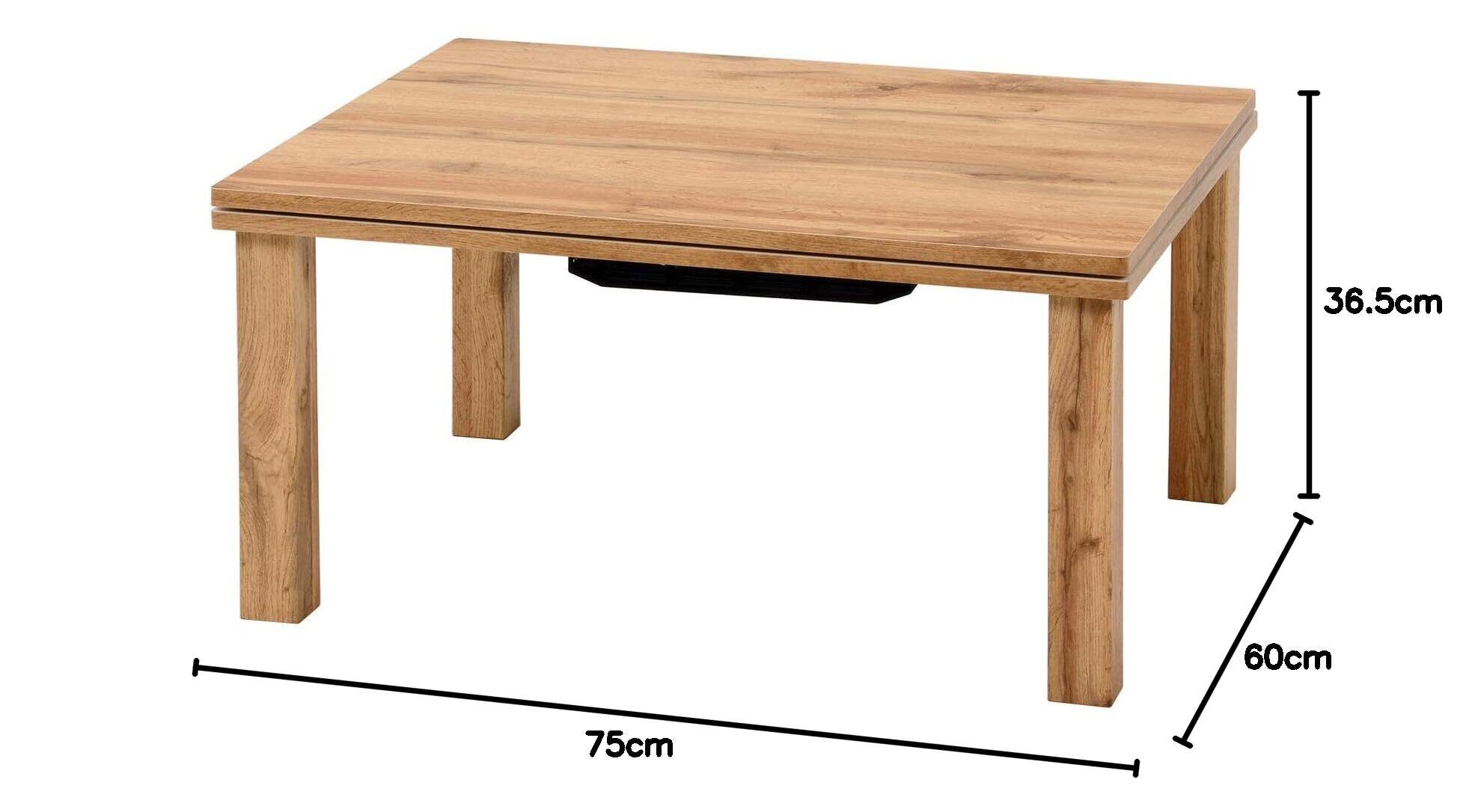 萩原 こたつ こたつテーブル センターテーブル カジュアル 一人用 コンパクト 長方形 ウッド調 ヴィンテージ 奥行60×幅75×高さ37 ナチュラル カルテス7560