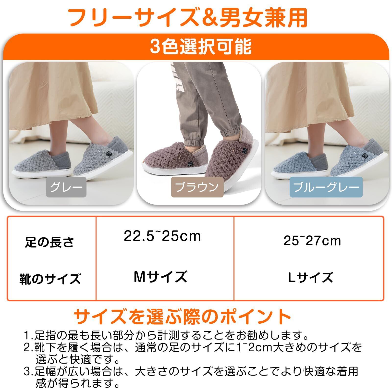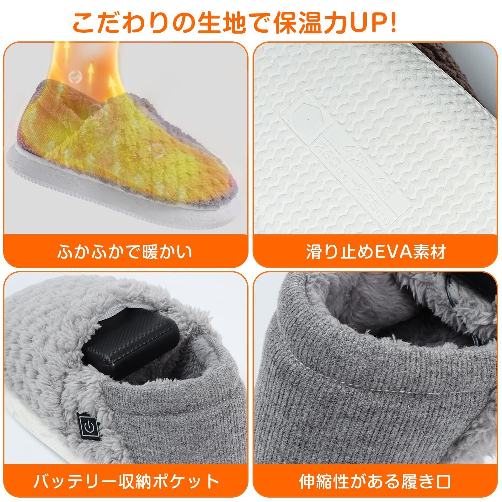 電気スリッパ コードレス 10秒速暖 フットウォーマー 足温器 充電式 電熱スリッパ 歩ける 足元ヒーター 2個6000mAhモバイルバッテリー付き 日本製ヒーター 3段階温度調節 1.5m延長コード付き スリッパ ヒーター 洗える 足を温めるグッズ 男女兼用-グレー02, L