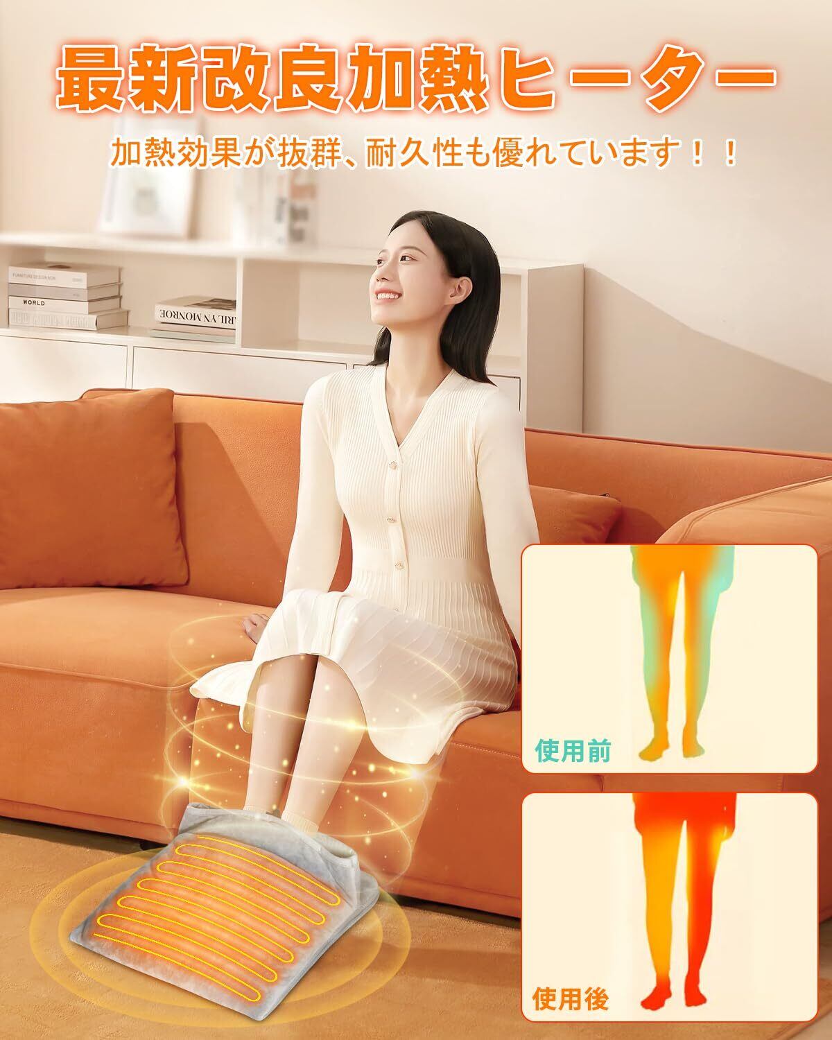 【様々なシーンに活躍】全方位包み込まれるような暖かく感じられる足温器です。シンプルなデザインで省スペースで収納が簡単、製品全体を水洗いで対応可能、日常のお手入れも簡単に行えます。ソファーで長い時間テレビや本を見たり、部屋でデスクで前勉強したり、会社でデスクワークしたりして足元から体全身まで暖かさを届け、寒い冬場を快適に過ごす、家族、お友達や同僚にプレゼントするのもピッタリです。