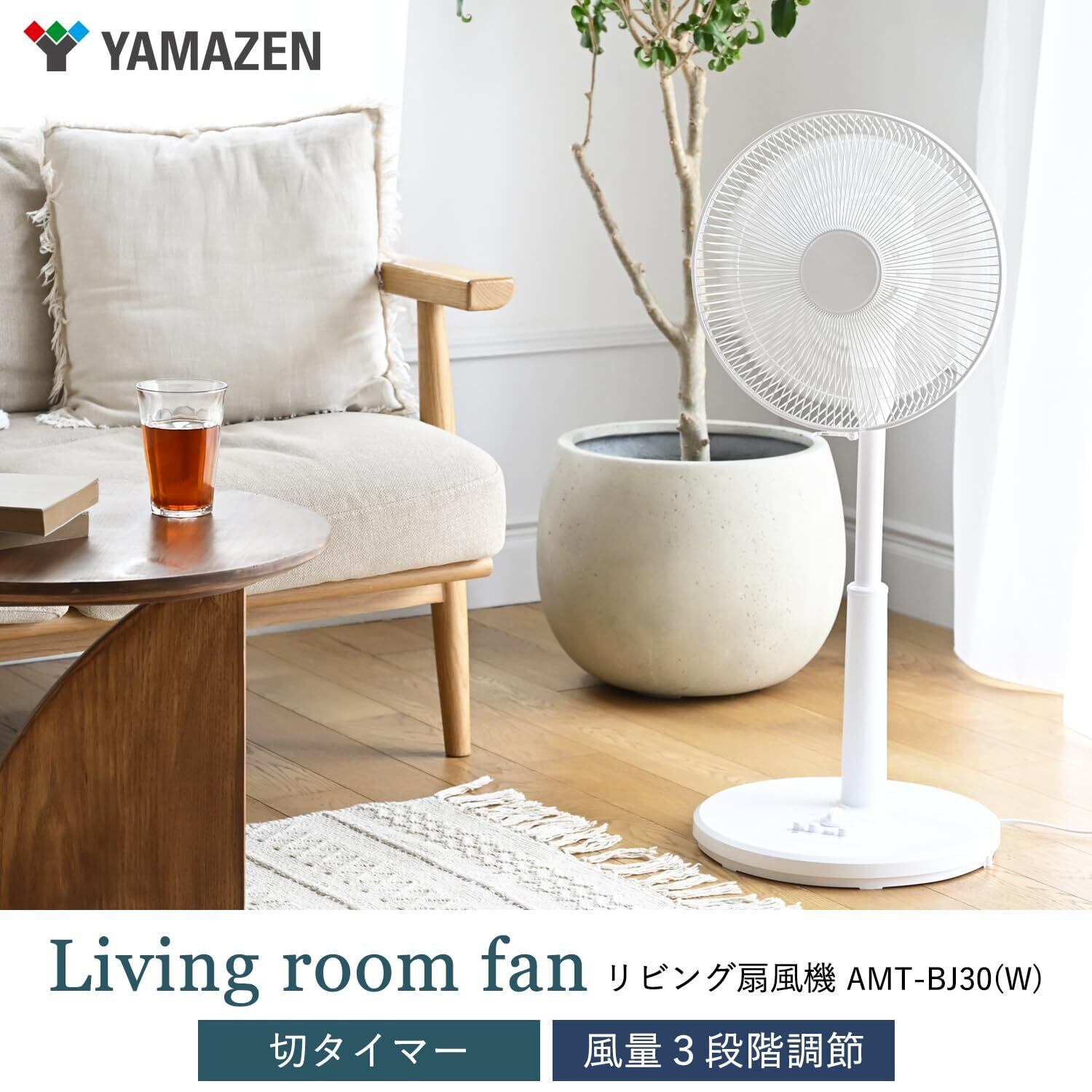 扇風機 リビング 左右自動首振り 押しボタンスイッチ 風量3段階調節 切タイマー 換気 ホワイト AMT-BJ30(W)