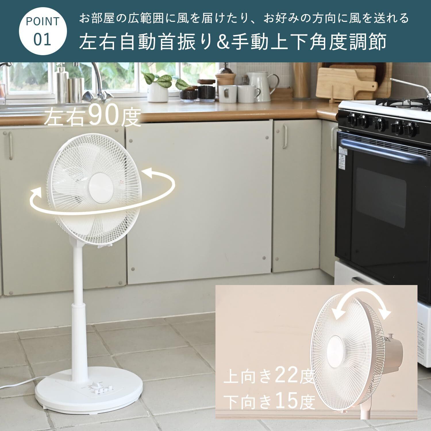 ●左右自動首振りで、お部屋全体に涼しい風をお届け。