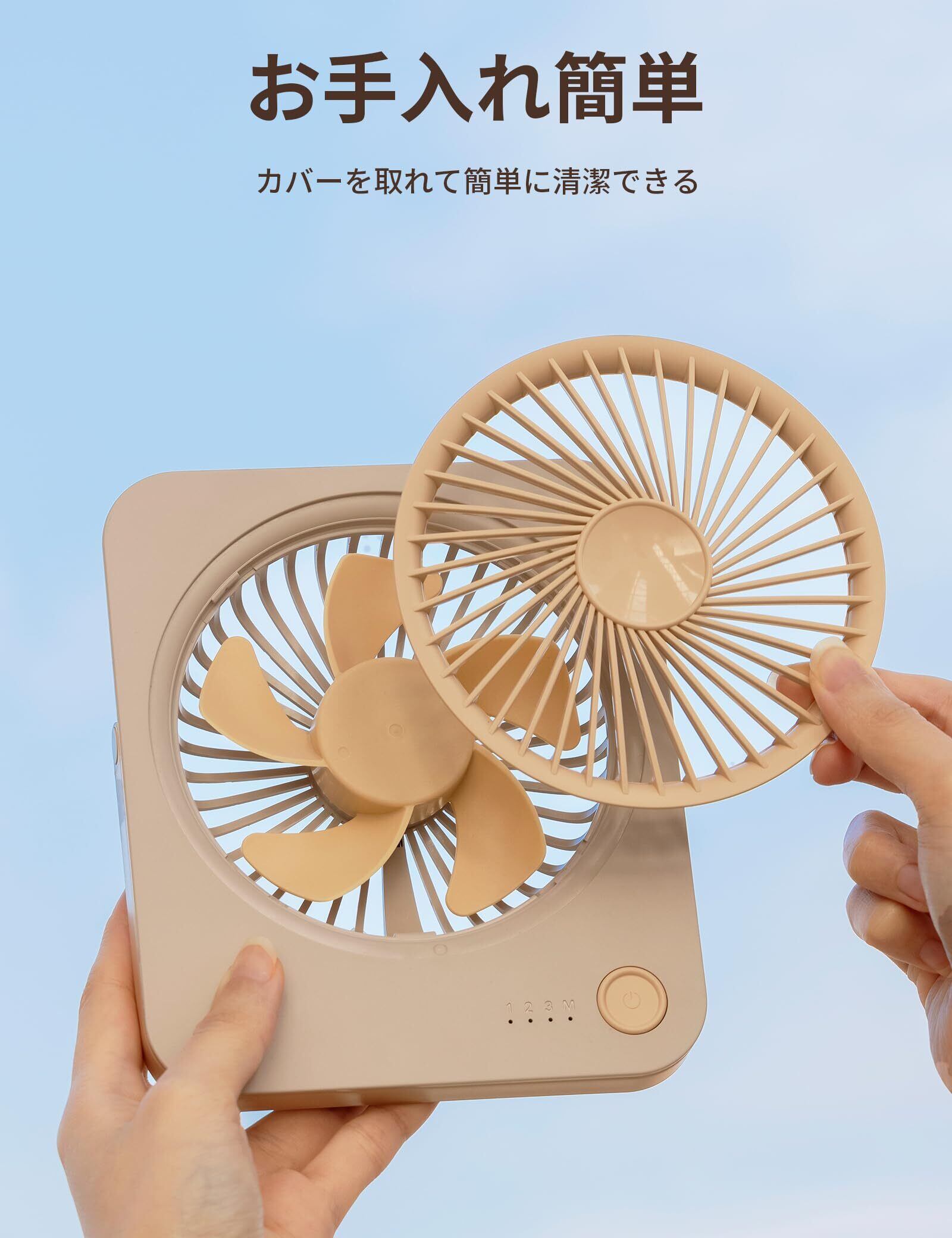 【超静音・usb充電式】高品質なブラシレスモーターの構造と曲線状の羽根により、このミニ扇風機はパワフル送風同時に、運転騒音が低くなります。また、Type-c充電ポート、複数の電源供給方法、いつでも簡単に充電できます。自宅、オフィス、寝室、ビーチ、キャンプなど、どこでも涼しい一日を楽しめます。○注意:充電の際に、Type-cケーブルを完全に充電ポートに差し込んでください。