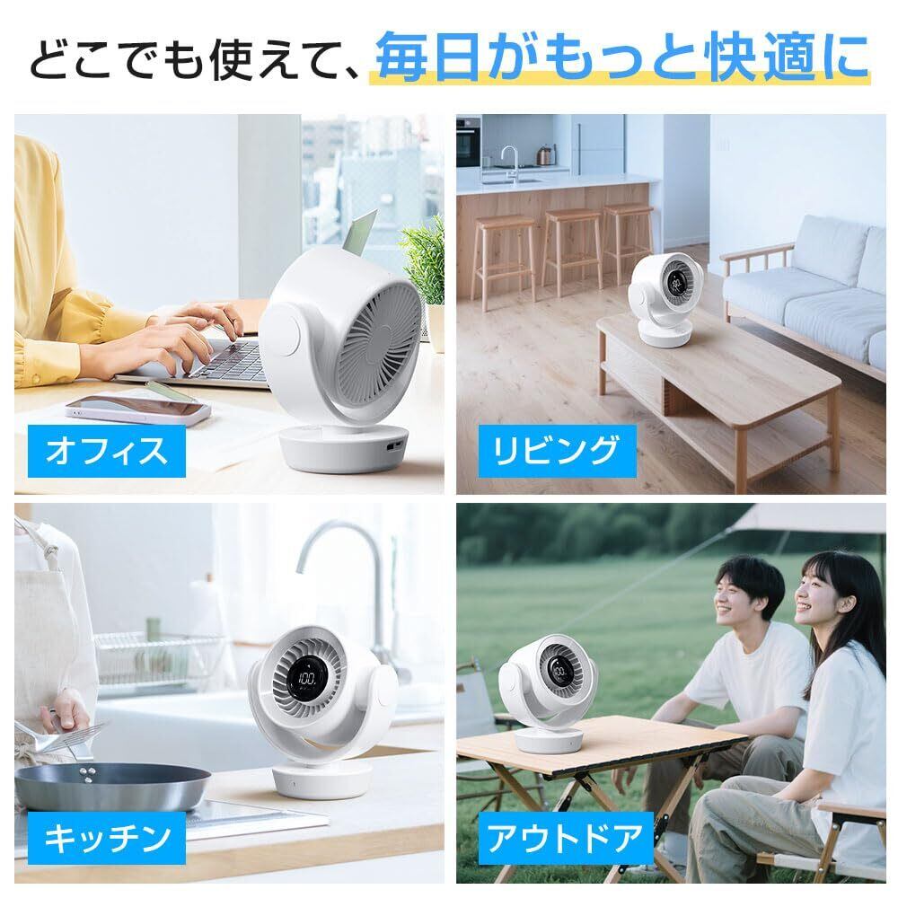 【充電式&コードレス|どこでも使える小型扇風機】コードレス扇風機 としてType-C充電対応のサーキュレーター 充電式モデル。コードレス設計のため、持ち運びに便利な小型扇風機としても活躍します。卓上や床置きにも対応できる扇風機 小型タイプで、キッチンや寝室でも使いやすい設計です。