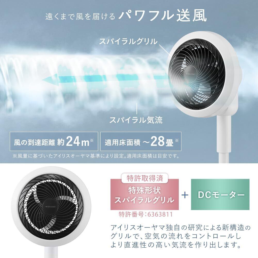 アイリスオーヤマ 扇風機 DCモーター 28畳 サーキュレーター扇風機 上下左右 首振り リモコン付き AZSF-SDC15TEC-W