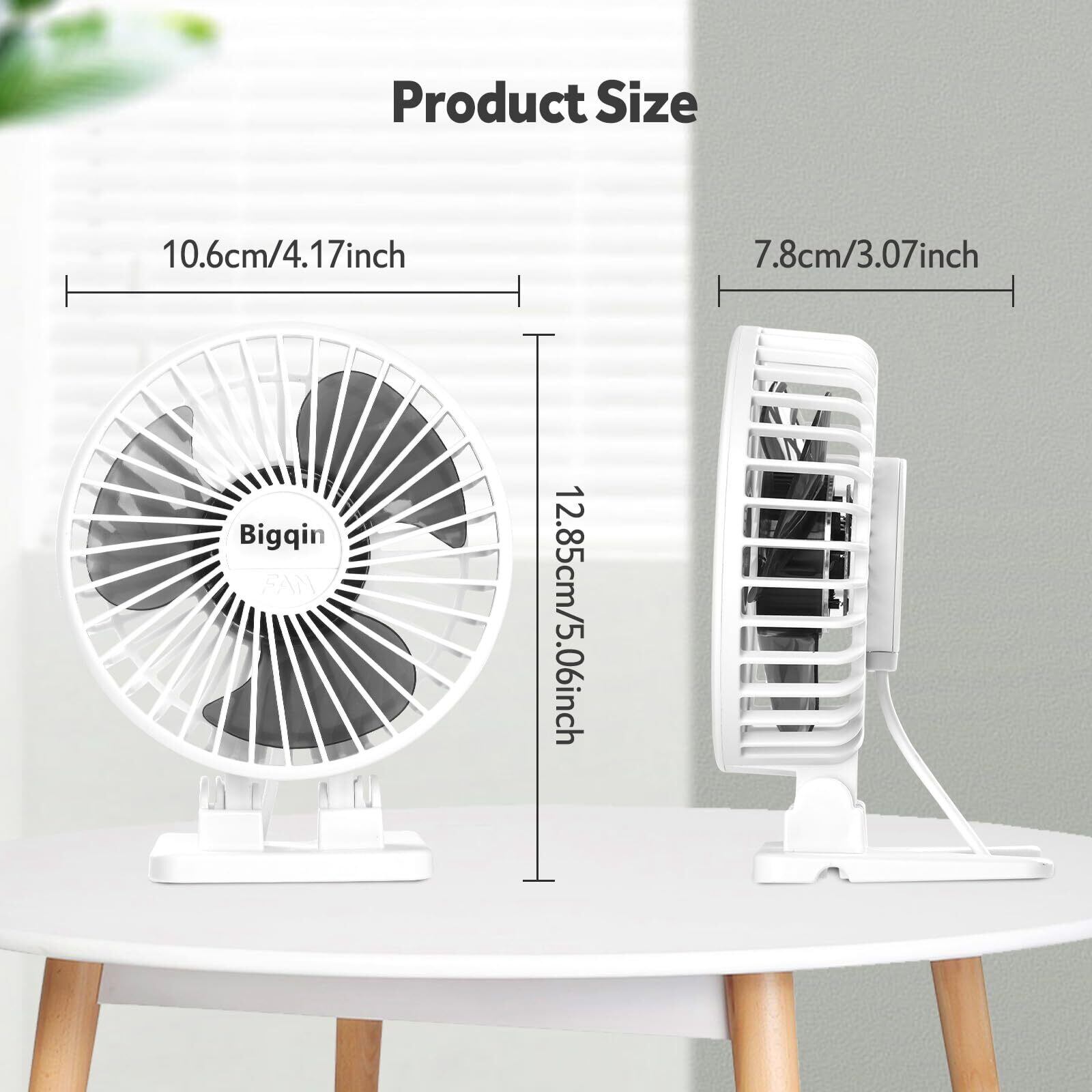 【折り畳み式&持ち運び便利】扇風機のベースは折りたたんで収納可能、折りたたんだサイズは13×10.5×4cmに、重さが約123g、小さくて軽量で持ち運びに便利です。職場で使用した後、気軽にカバンに入れ、お宅や車にも使用できる。