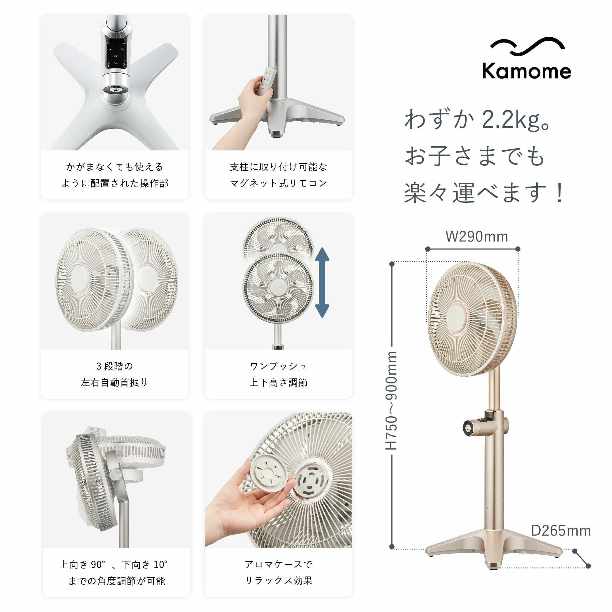 かがまずに使える操作部、自動首振りの角度調節など使い心地も抜群。「Kamomefan +c lite」は軽々持ち運ぶことができる、シリーズ最軽量タイプ。