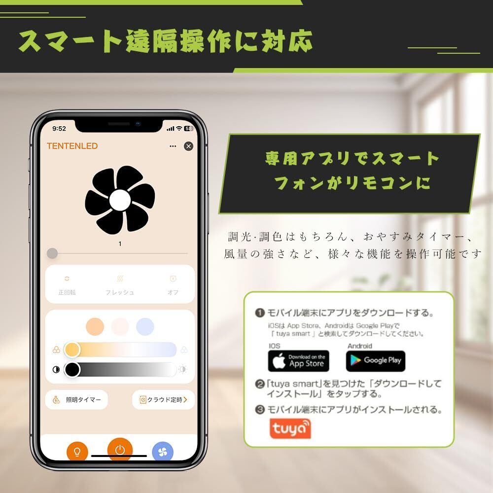 ▶️【無段階調光調色&風速調整】専用のリモコンとスマートフォンアプリで、簡単に調光・調色・風速の調整が可能です。お好みに合わせて、室内の照明を簡単に調整でき、温かみのある光からクールな光まで、シーンに応じた最適な明るさと色温を実現します。さらに、風速も無段階で調整でき、心地よい風をお好みの強さに合わせて設定できます。