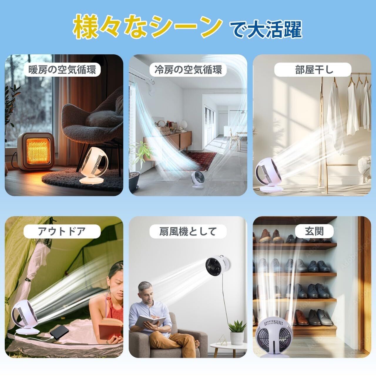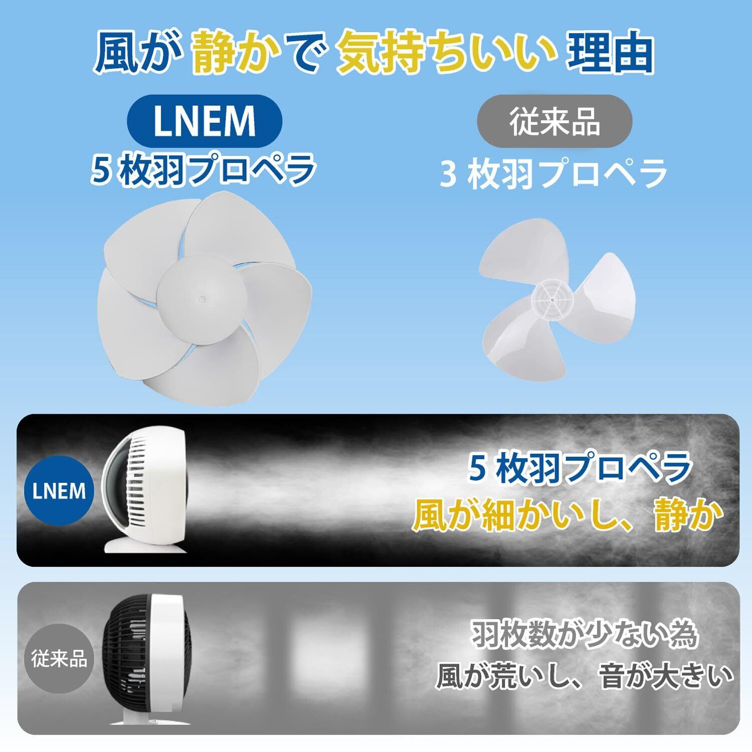 LNEM サーキュレーター 静音 DCモーター 3段調整 モバイルバッテリー接続可 自動首振り 換気 部屋干し 車中泊 8畳 ホワイト×グレー