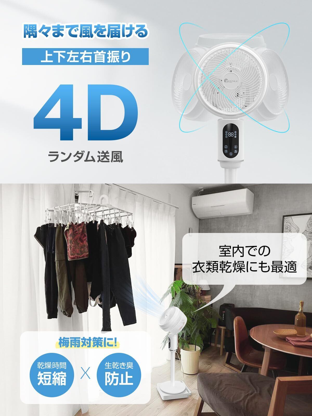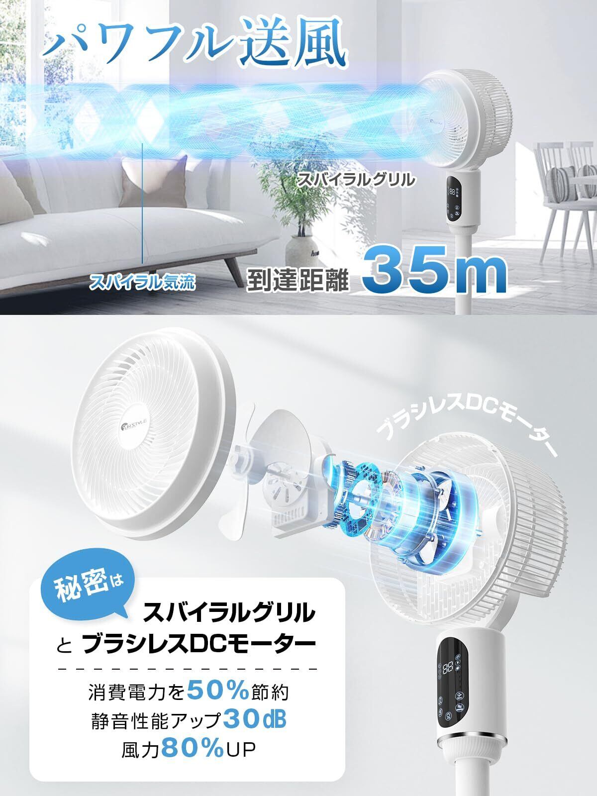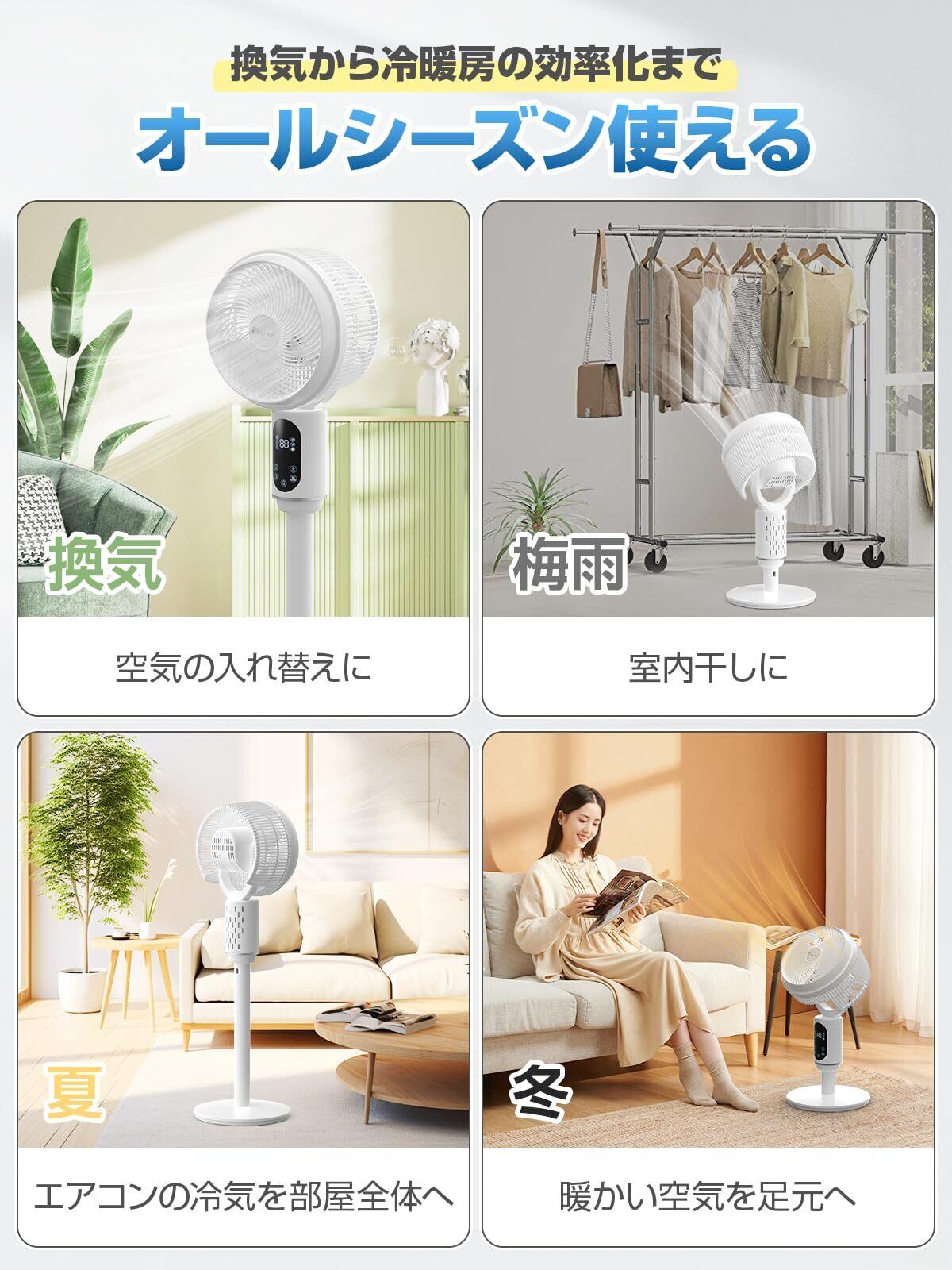 【1台多役&自由な高さ調節で年中快適】 1.7mの長い電源コードで、95%の住宅仕様に対応!コンセントから遠くてもストレスフリー。高さ54cm~86cmの段階調節が可能。スマートなスパイラルインターフェイスデザインにより、簡単に高さを変更でき、あらゆる部屋や使い方にぴったりフィットします。そして、約2.9kgの軽量設計で、片手で簡単に持ち運び可能です!冷房時は低めに設定して床付近の冷気を循環させ、暖房時は高めに設定して天井にたまった暖気を室内全体に広げます。夏は涼しい風を届ける扇風機として、春や梅雨時には換気や衣類乾燥、空気循環に大活躍。1台で年間を通じて便利に使える万能設計です。を通じて使える万能設計で、季節を問わず快適な室内環境をキープ。このサーキュレーターを活用すれば、空気循環の効率が飛躍的に向上し、室内の快適性が高まるだけでなく、省エネ効果も確実に実感できます。シンプル操作で日常生活の質をワンランク上げる、この一台をぜひご活用ください。