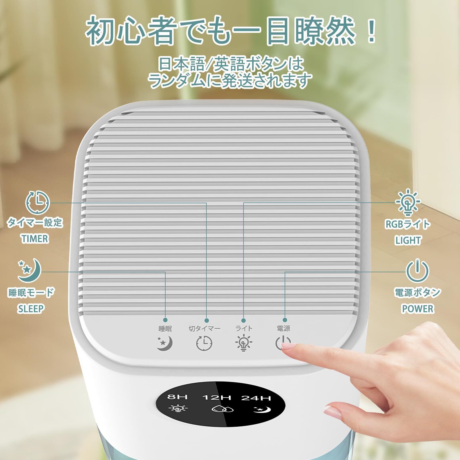 【7色の雰囲気ライト・お休みモード】ライトボタンを押すことで、7色のライトが自動で切り替わるモードや、色を選択できるモードに切り替え可能。また、寝室でも安心して使える「お休みモード」を搭載しており、運転音が静かになり、睡眠の邪魔をしません。