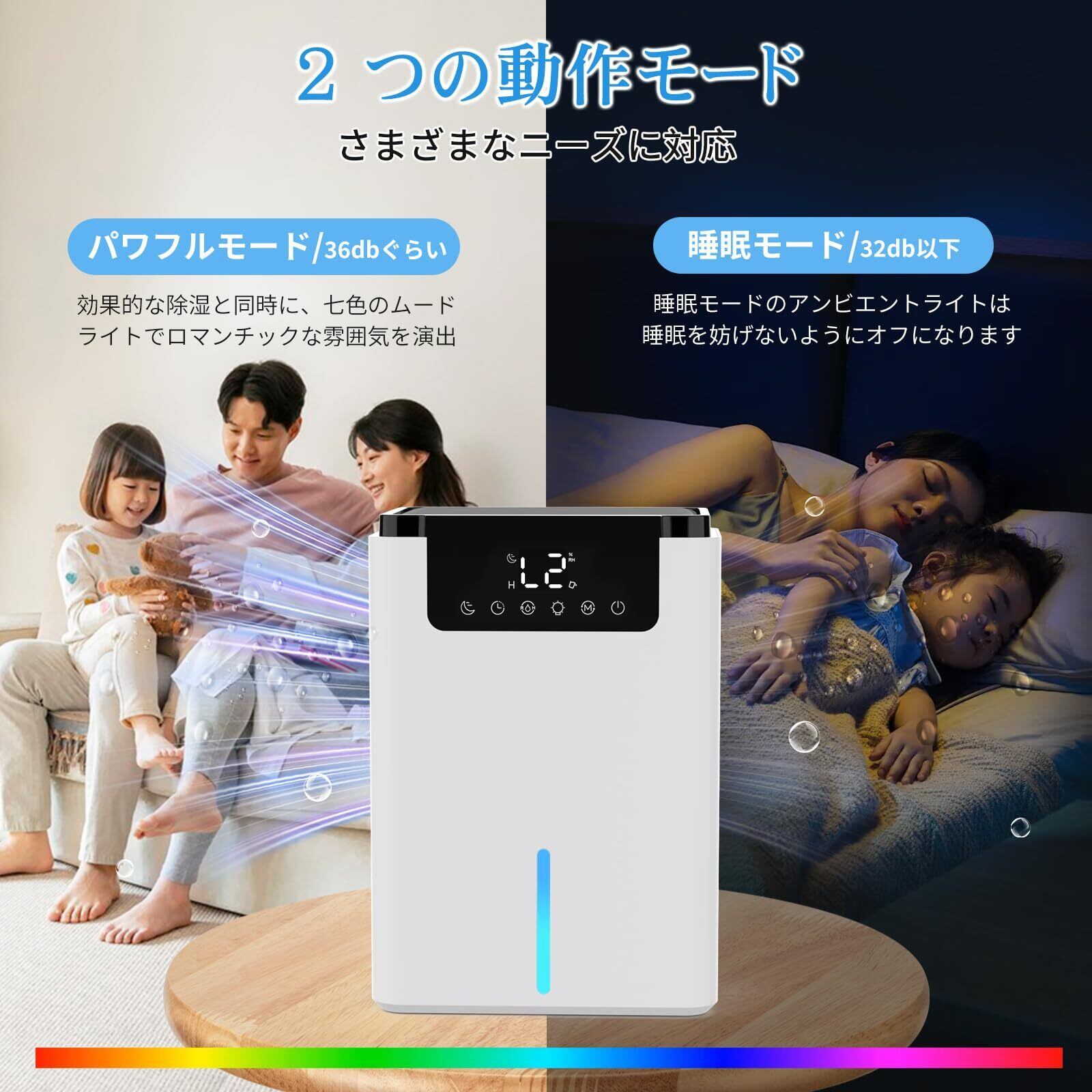 除湿機 小型 除湿器2200ml大容量 18畳まで対応 ダブルペルチェ式 除湿乾燥機 クローゼット 除湿 空気清浄機 静音 満水自動停止 タイマー搭載 7色ライト 携帯便利 脱臭 省エネ/コロナ/カビ/梅雨/結露/花粉対策 湿気取り 家庭用 PSE認証済 600ml/日