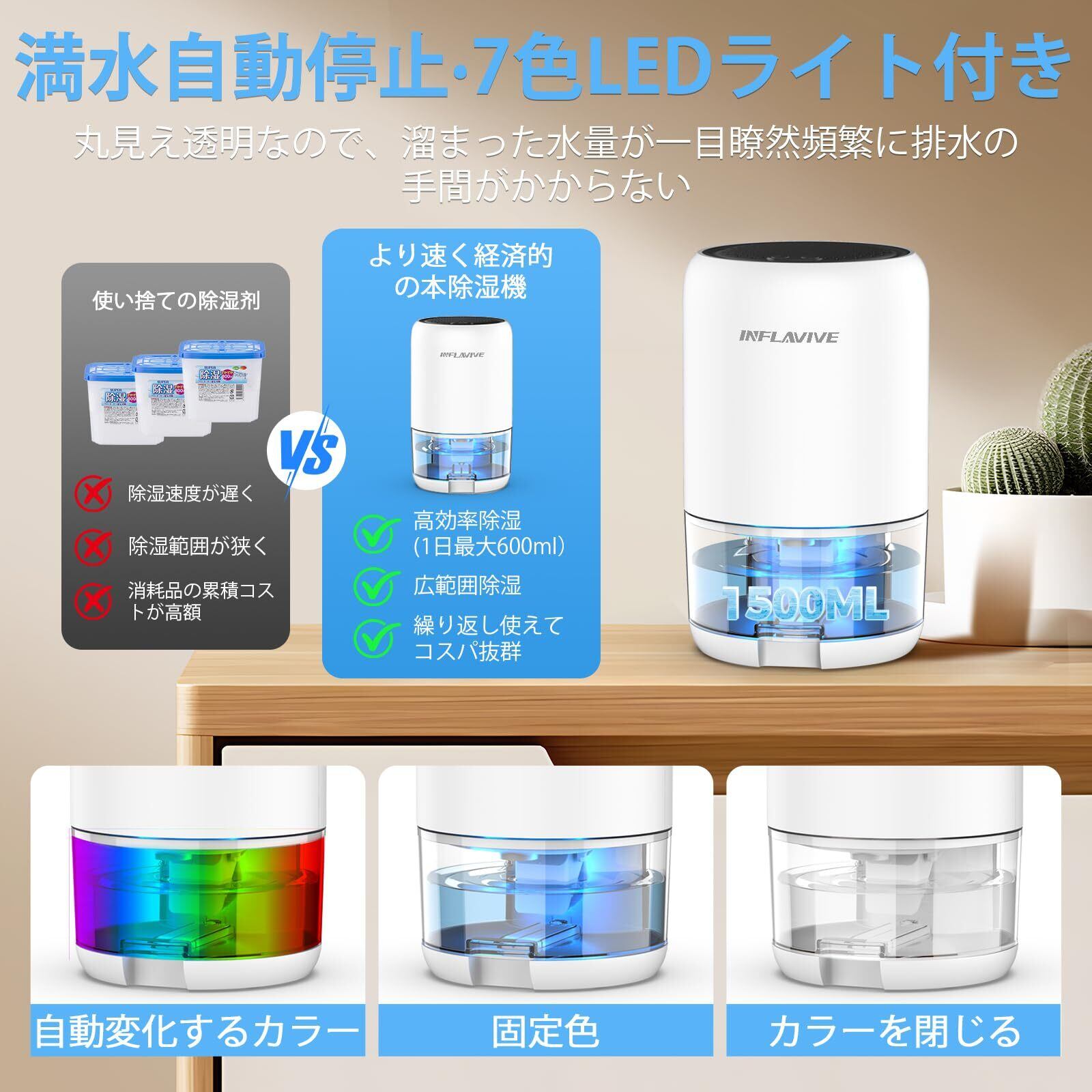 除湿機 小型 省エネ 静音1500ML大容量 除湿器じょしつき 衣類乾燥機 7色LEDライト満水自動停止 湿気取り梅雨湿気対策 結露カビ防止 部屋干し空気清浄 強力除湿 スピード乾燥 寝室 部屋 一人約15畳対応日本語取扱説明書付 PSE認証済プレゼント 人気商品 除湿剤の代わりに