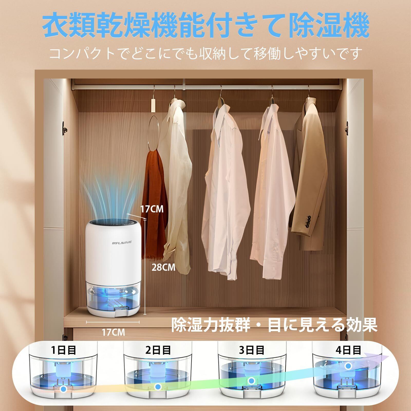 【除湿剤より経済的·省エネ36W·2段階切替】使い捨ての除湿剤を買い続けるよりも断然経済的です。 このじょしつき 衣類乾燥機消費電力はわずか36Wで、1時間あたりの電気代は約1.2円(※料金単価による)。24時間つけっぱなしにしてもお財布に優しく、環境負荷も少ないサステナブルな湿気対策です。じょしつき 衣類乾燥機が「自動解凍機能」が備わっており、起動時には自動的に結露を取り除きます。空気の乾燥しやすい冬にも活躍します。中使えます。最高乾燥機!!この小型除湿機は「除湿強」・「除湿弱」2段階搭載、シーンに応じて使えます。室温・室湿が高くなるほど除湿力が高くなるので!高温多湿な季節に、狭いスペースの湿気・カビ対策として、このじょしつきが最適。お休みモード(弱運転)选择時は、図書館より静かな30dB以下の静音運転。さらに、LEDライトを完全に消灯できるため、就寝中でも安心して使用できます。