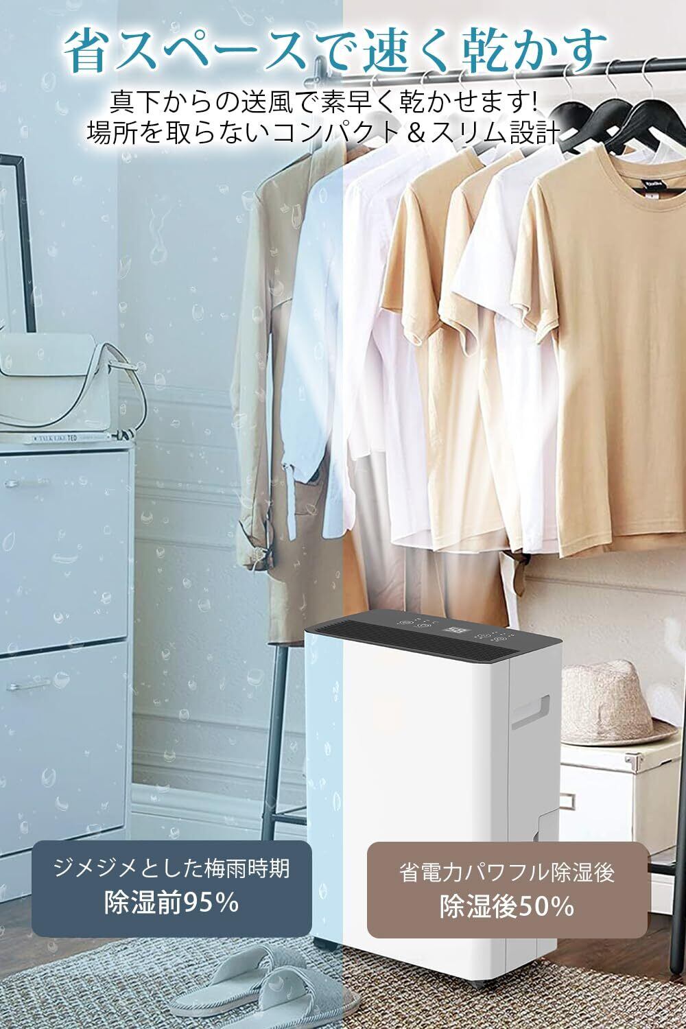除湿機 コンプレッサー式 強力 30畳 12L/日 衣類乾燥 除湿器 2.5L タイマー/湿度センサー/キャンスター付 コンパクト 大容量 静音 省エネ 連続排水 家庭用 部屋干し カビ防止 夏 湿度 梅雨対策 リビング クローゼット 寝室 脱衣所 (12L/日)
