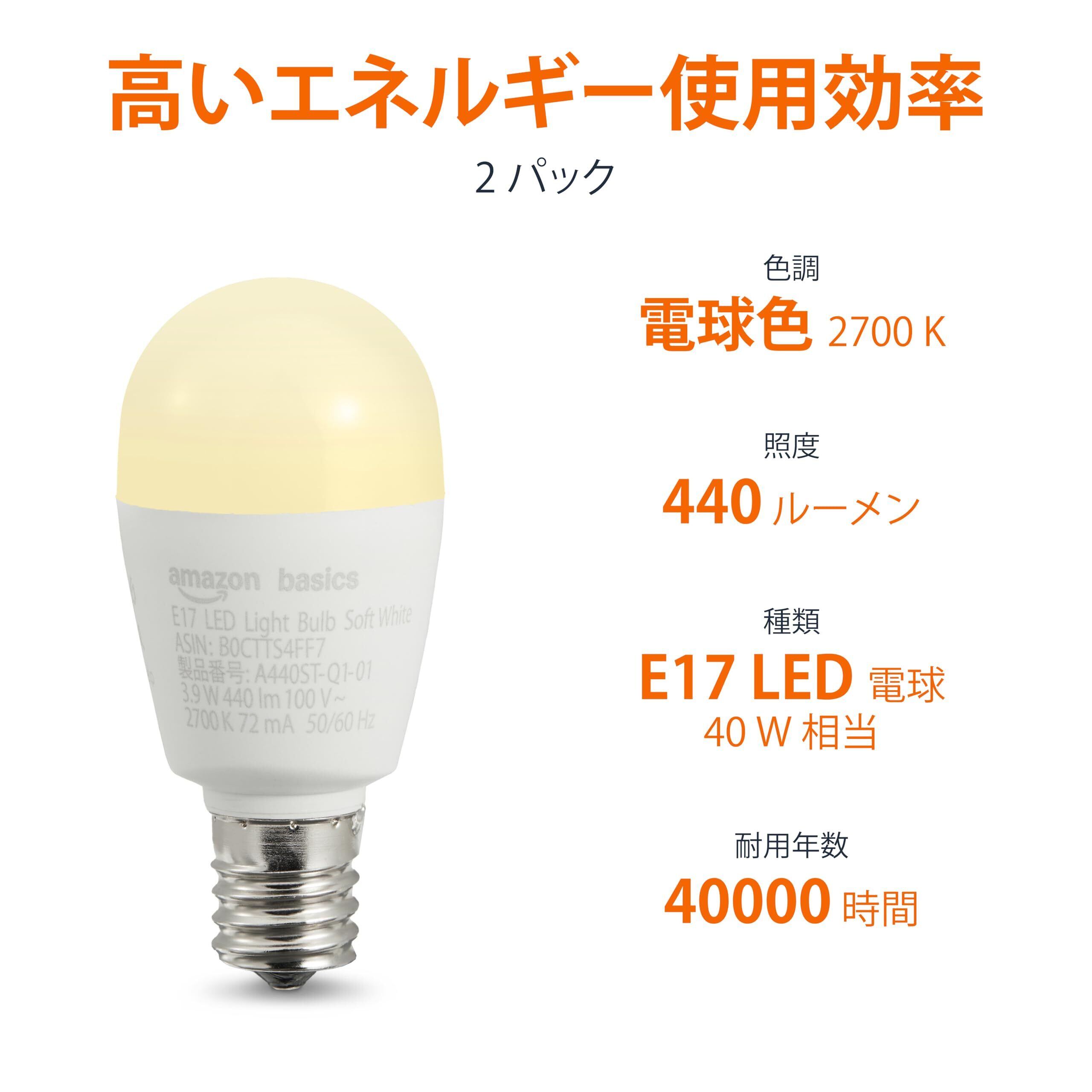 ベーシック E17 LED電球 40W型 電球色 非調光 440lm 2個パック