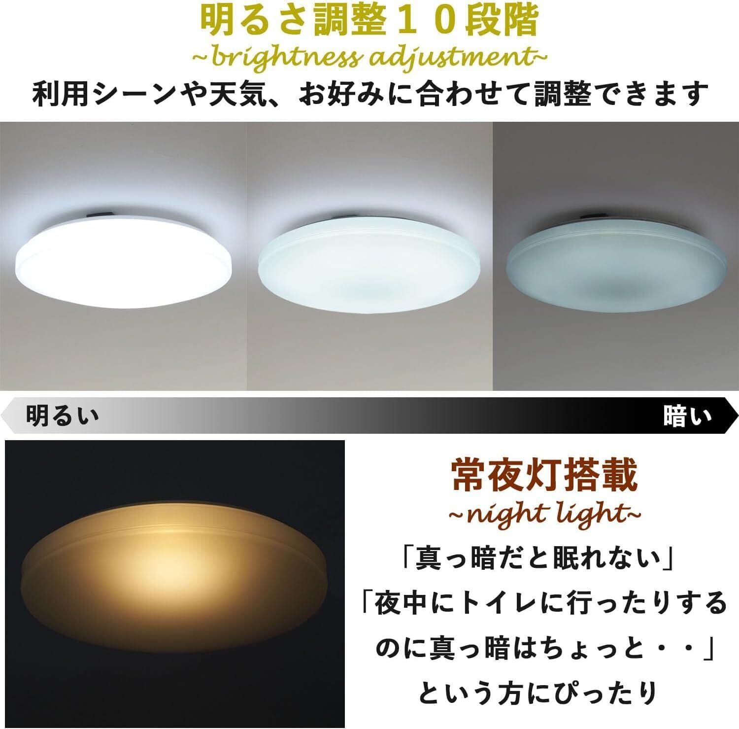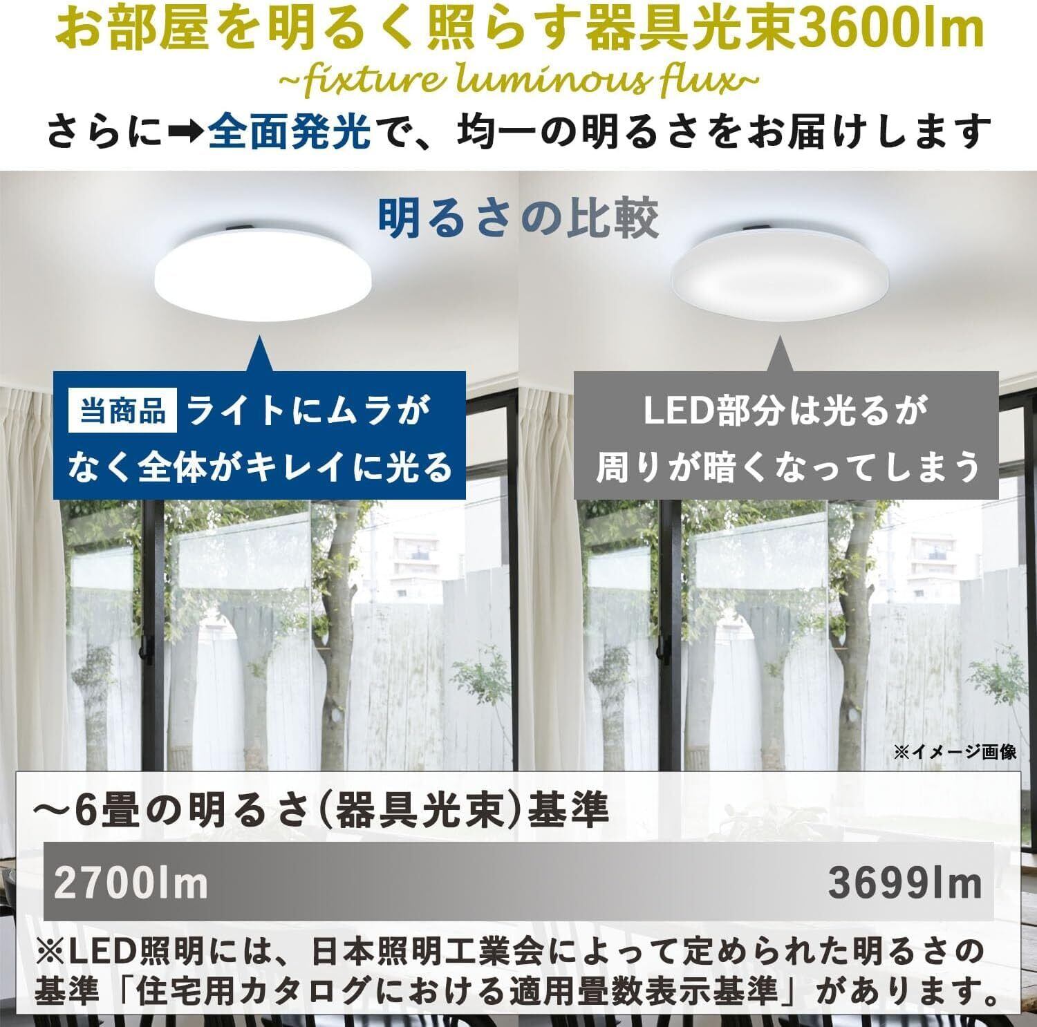 LEDシーリングライト 6畳 (日本照明工業会基準) 3600lm 室内/天井照明 10段階調光タイプ 常夜灯 リモコン付き 和室 リビング 寝室 メモリ機能 OFFタイマー (30分/60分) LC-G06