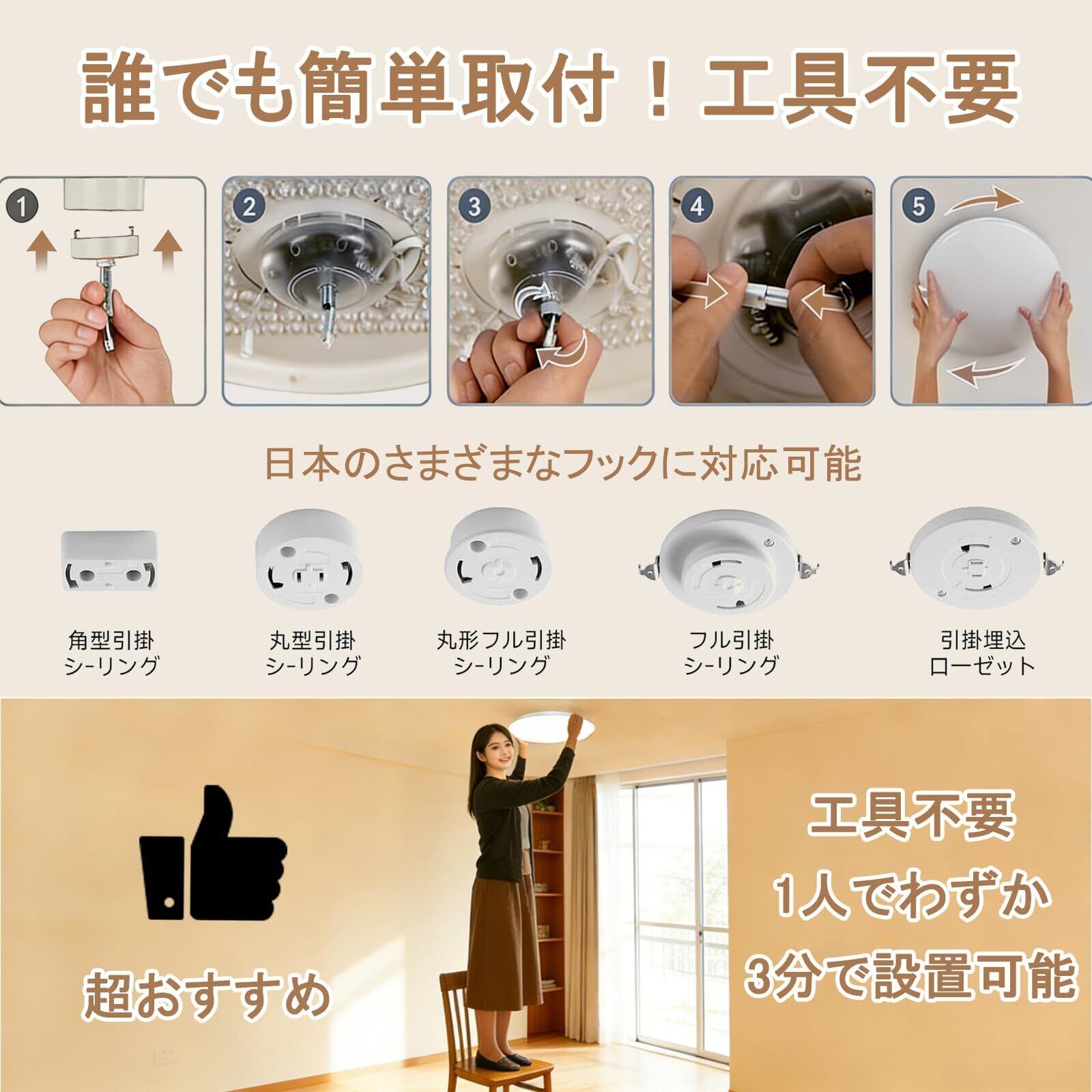 【工具不要・3分で簡単取付】 商品到着後は状態をご確認ください。破損があった場合はご連絡ください。無料で返品・交換いたします。シーリングライト 10-12畳用に最適な分離式設計。女性1人でも押し込んで回すだけで完了!従来の一体型より格段に簡単です。
