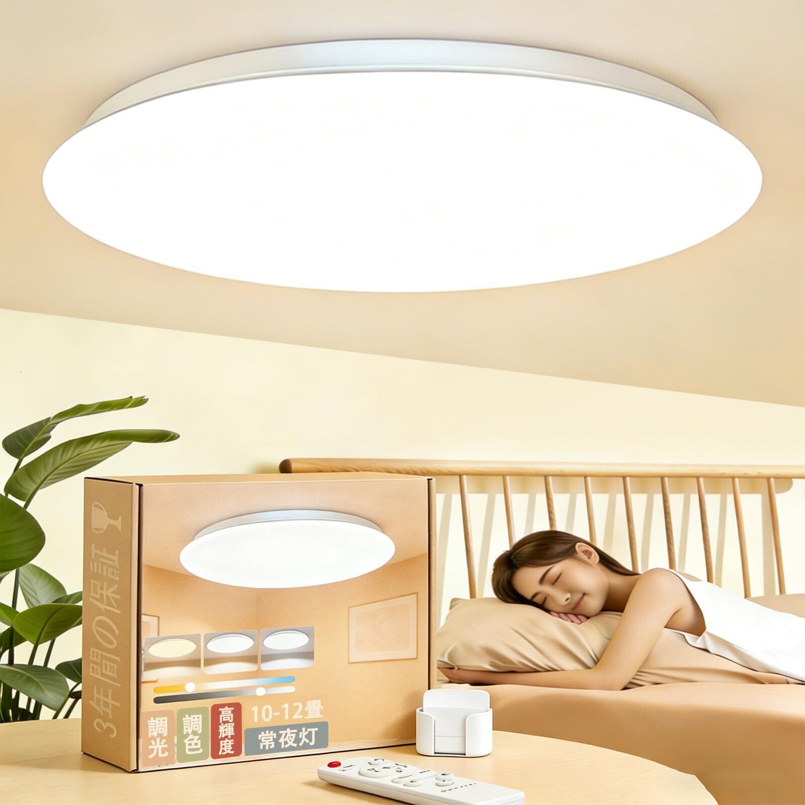 LEDシーリングライト 10畳 12畳 5060lm 薄型5.8cm 調光調色 リモコン 明るさ記憶機能 常夜灯タイマー 日本照明工業会パートナー PSE認証獲得 日本語説明書付き 寝室/部屋/玄関/門灯/廊下/和室/台所に使用可能