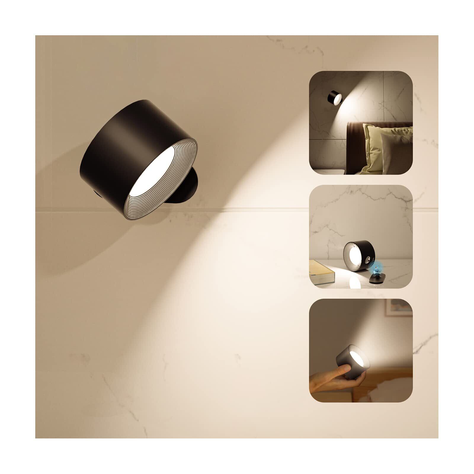 LED ブラケットライト スポット3段階調光調色 360°照明角度調整 コードレス 工事不要 ウォール 玄関 壁取付 間接照明 玄関ナイト デスク 高輝度 省エネ 壁掛けランプ ウォールランプ ベッドサイドランプ 卓上 壁掛けライト 日本語取扱説明書付き…