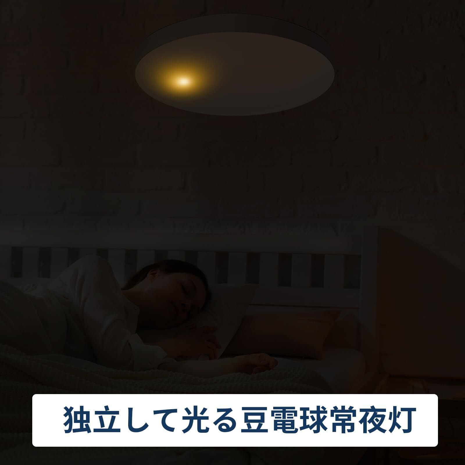 【メモリ機能・ON/OFFタイマー】リモコンでライトの明るさと色温度を調節し、30秒後に記憶されます。次回点灯時に記憶されたパターンから点灯します(ご注意:メモリ機能はリモコンで設定すること)。リモコンには30分/60分後の自動消灯の設定ができます。独立制御の豆電球常夜灯付き、低消費電力の常夜灯は夜間の睡眠や高齢者のケアに最適です