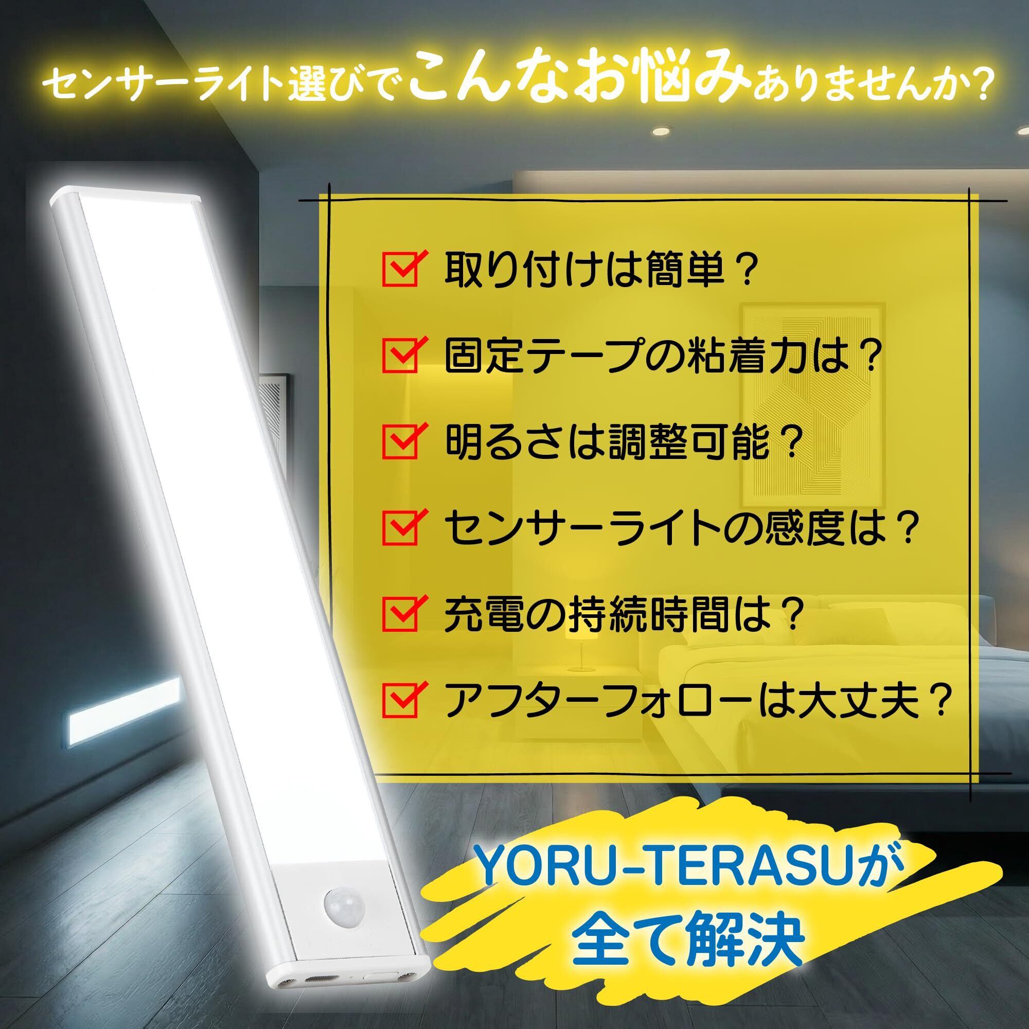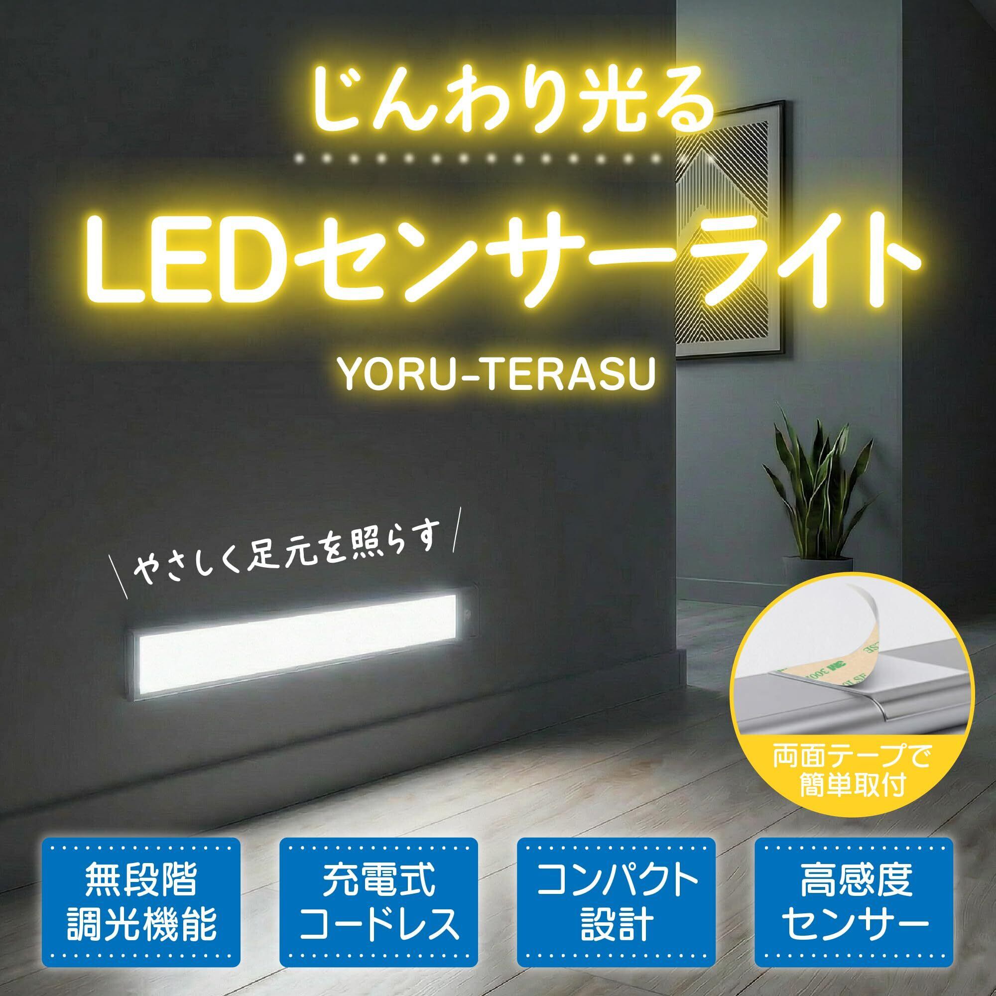 【安定性と柔軟性を兼ね備えた設計ヨルテラスのセンサーライトは、3Mの両面テープを採用しています。これにより、粘着力を発揮し、ライトは安定して固定され、簡単には落ちることがありません。さらに、その9mmの薄さのコンパクトな設計により、場所を選ばずに設置することが可能です。壁から天井、家具まで、あらゆる表面に対応するこのセンサーライトは、その粘着力とコンパクトさにより、どこでも取り付けることができます。ヨルテラスは、信頼性と柔軟性を兼ね備え、あなたの生活空間に最適な照明を提供します。